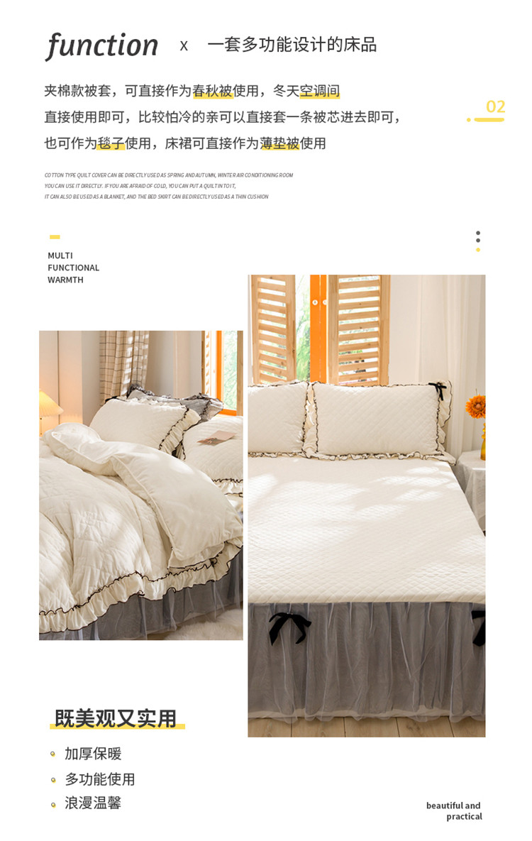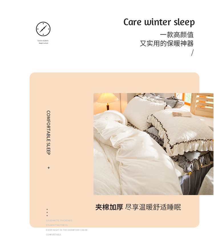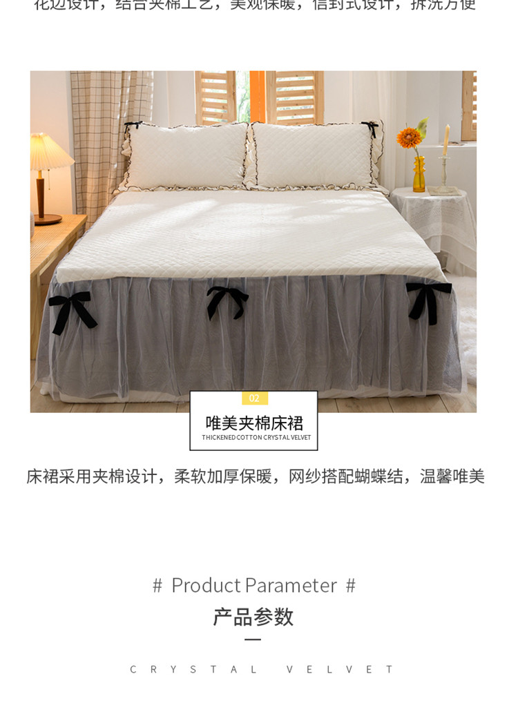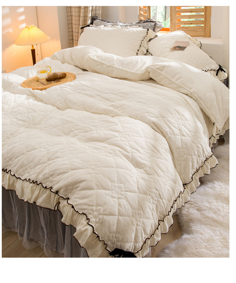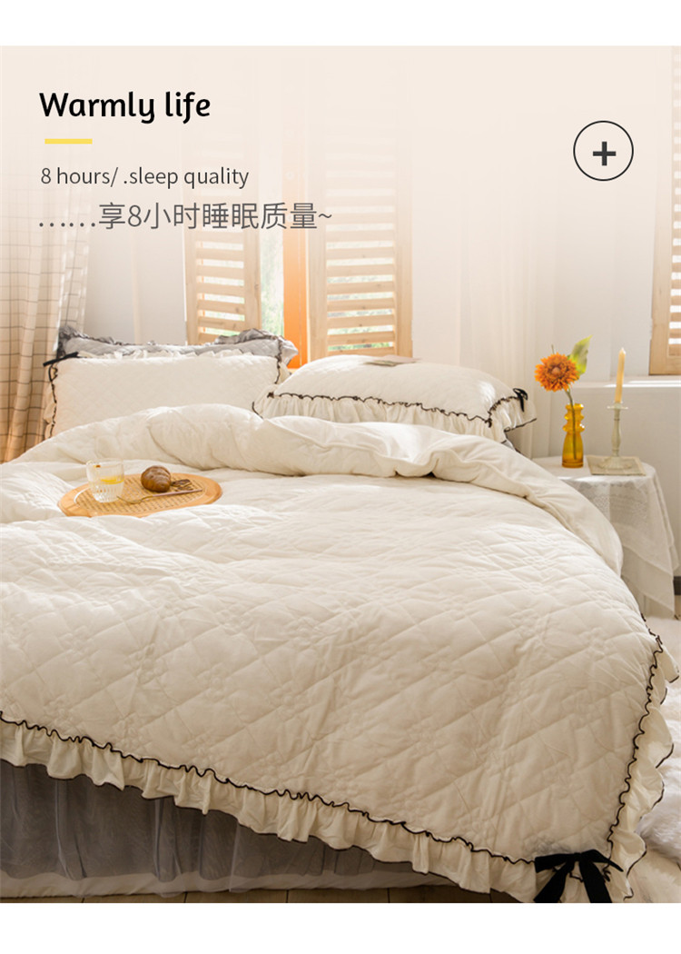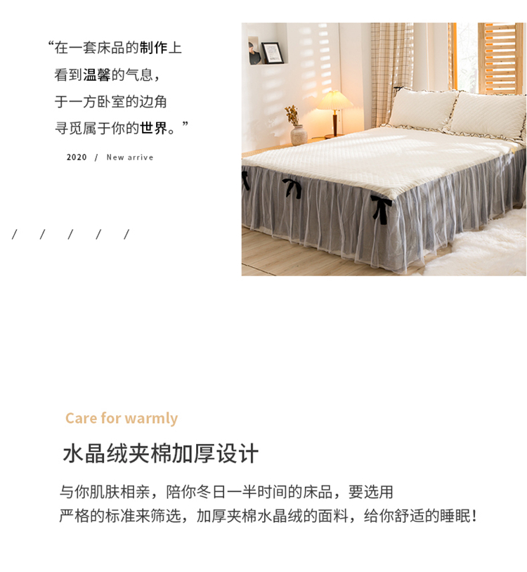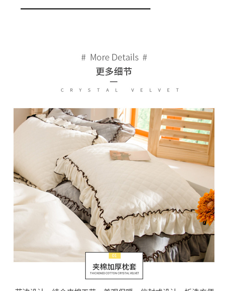 (总)嗨购 2020新款夹棉水晶绒韩版花边四件套