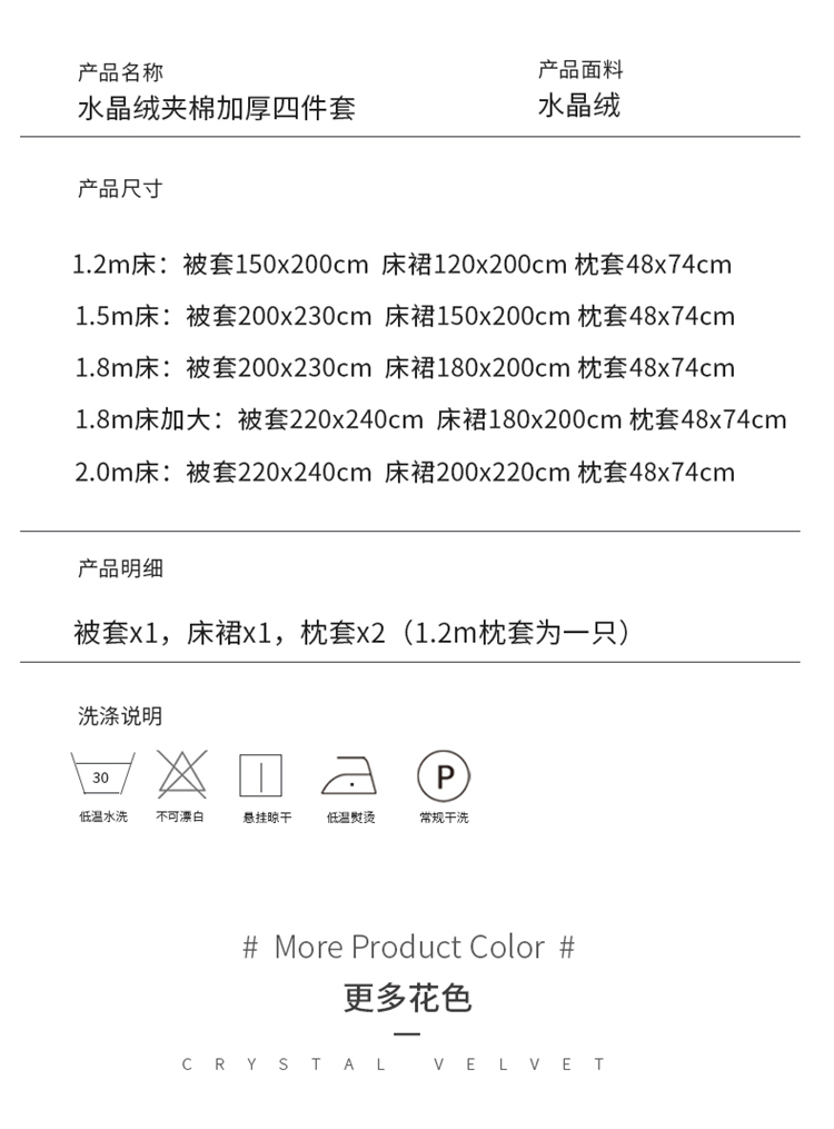 商品名称:(总)嗨购 2020新款夹棉水晶绒韩版花边四件套