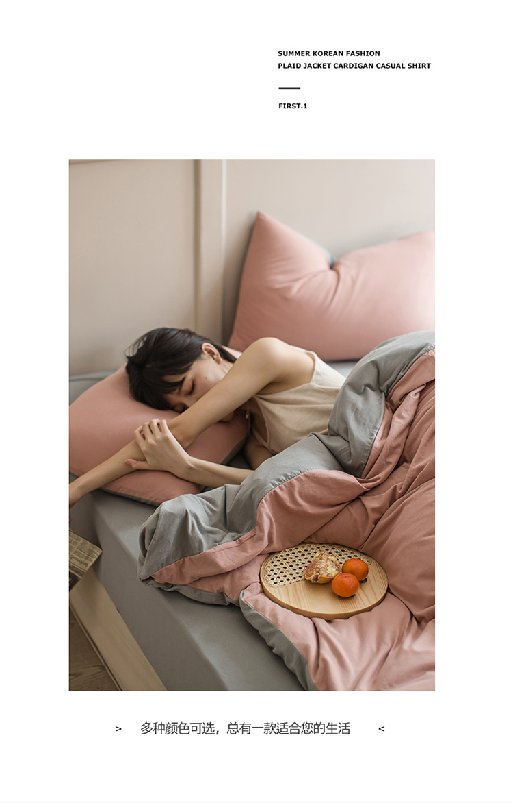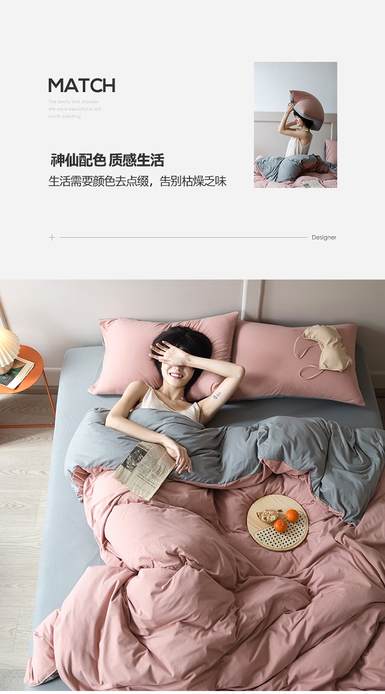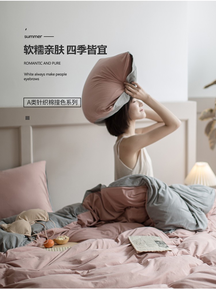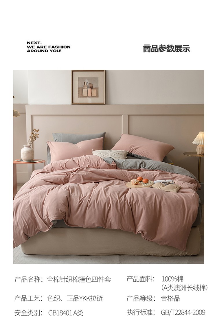 商品名称:风向标 2020秋冬新品针织棉素色双拼四件套 黛莎