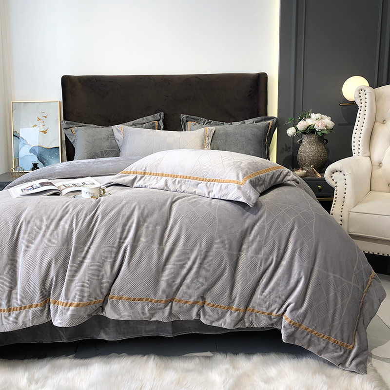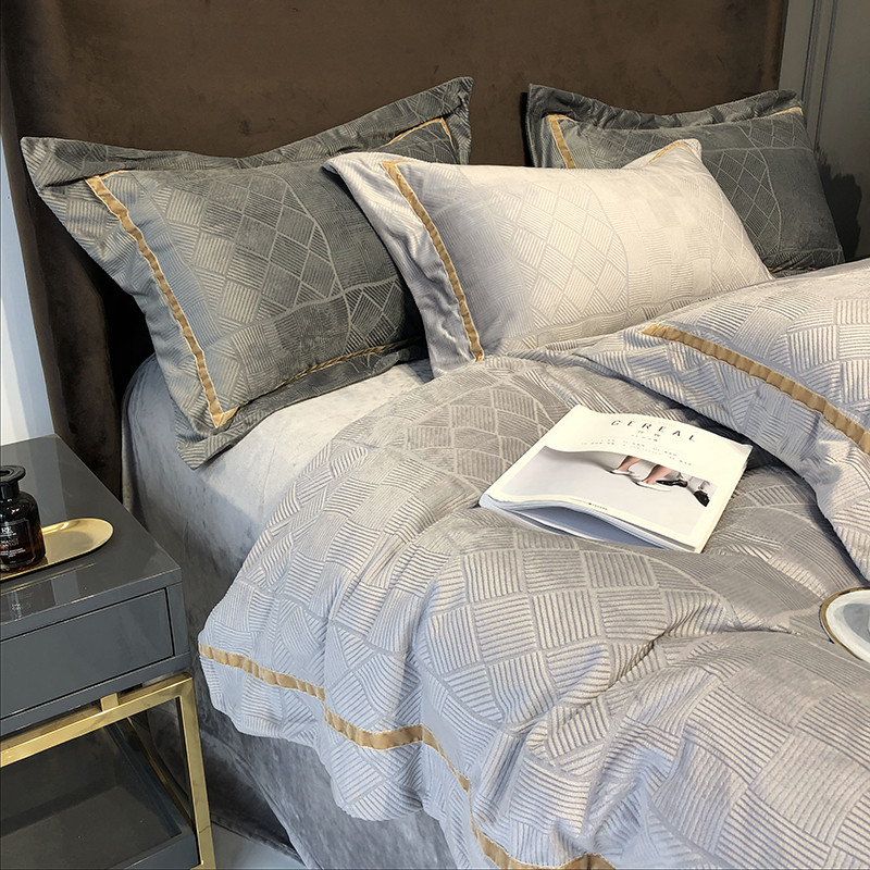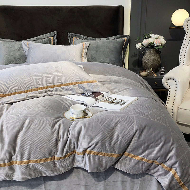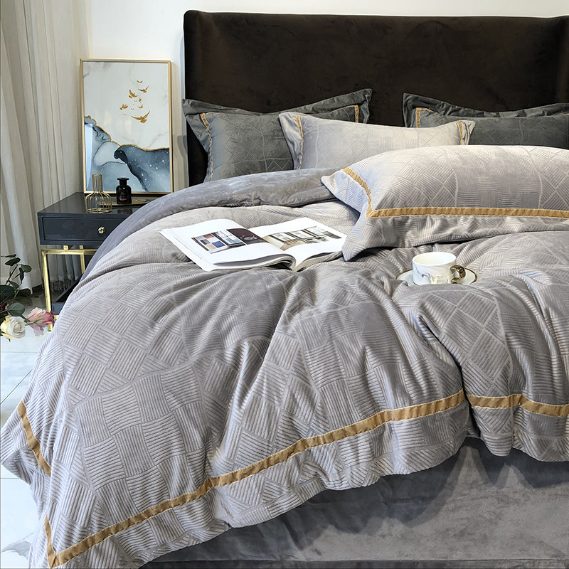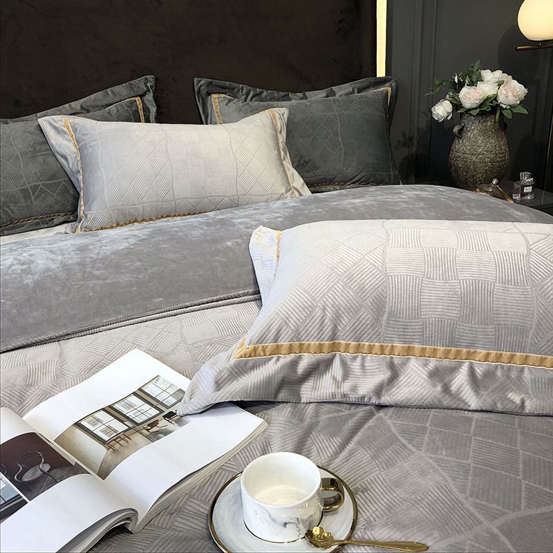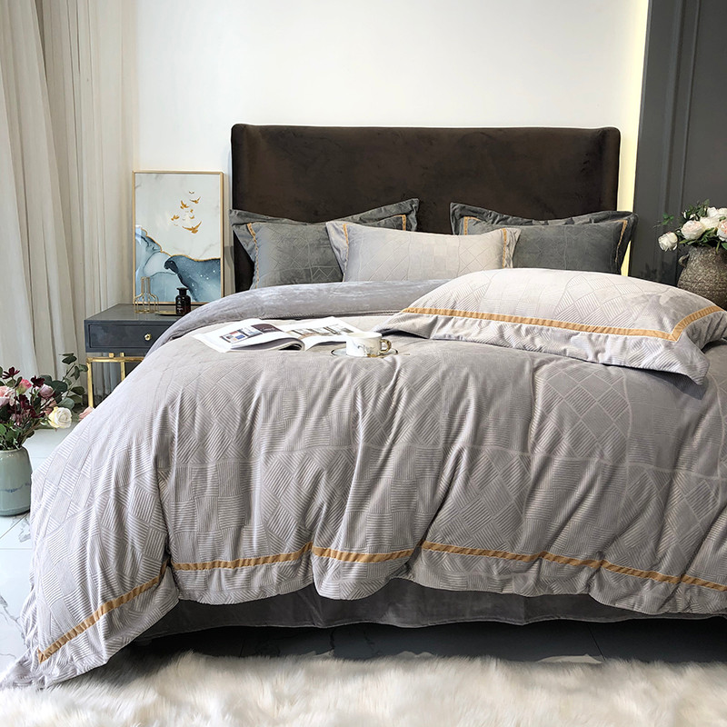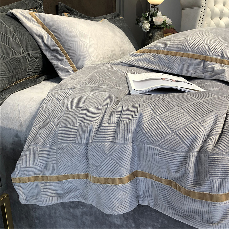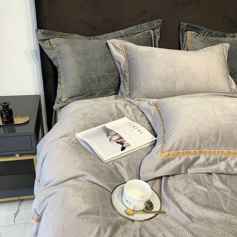 商品名称:太古汇2020新款日本进口立体提花雕花绒四件套 浅灰