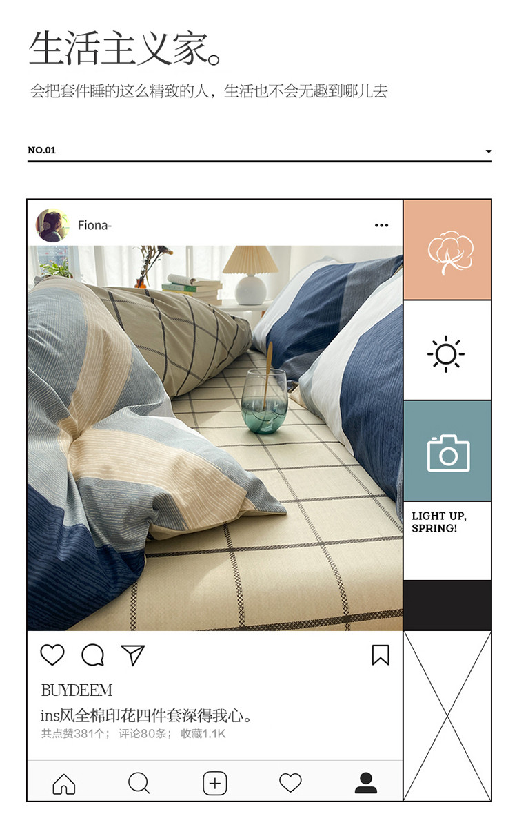 珺柔家纺 2021新款全棉印花四件套 旋律