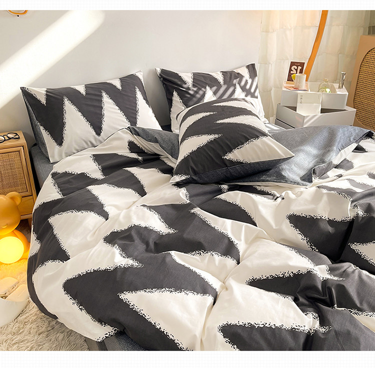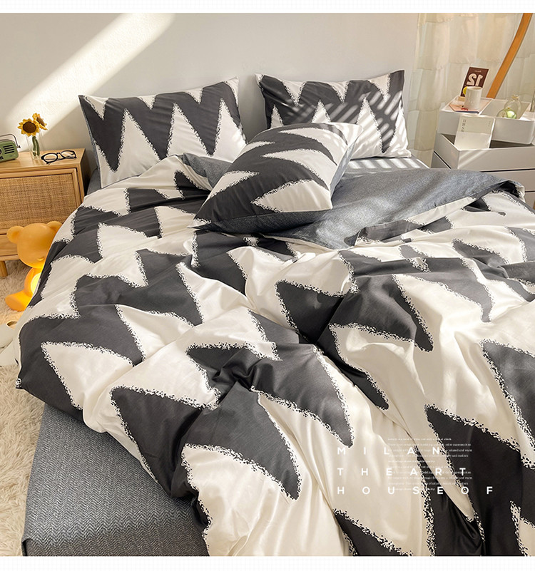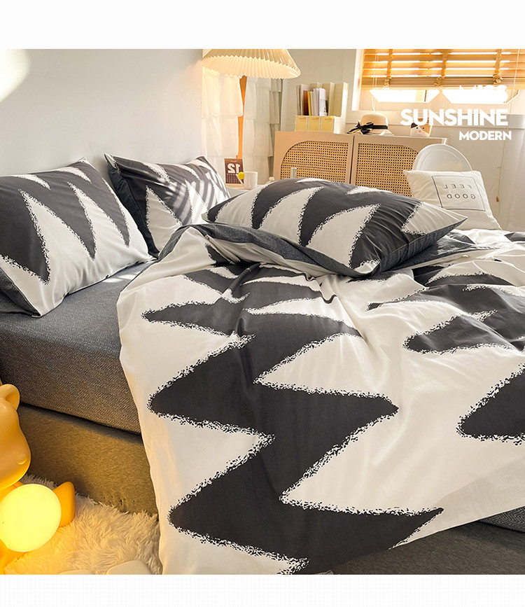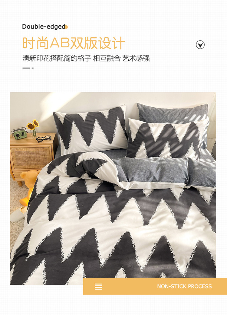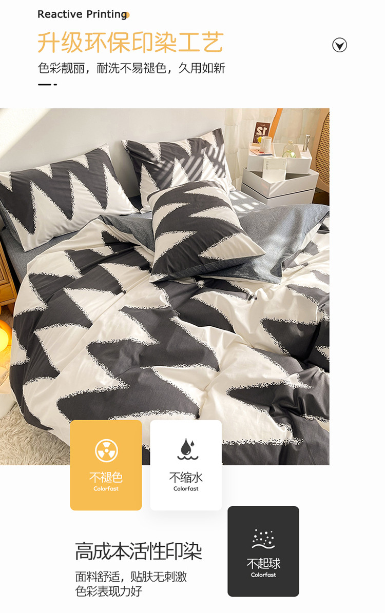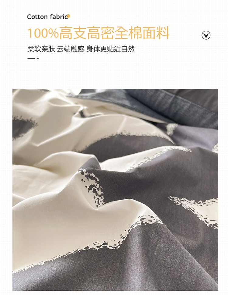 (总)小懒猪 2026新款全棉印花北欧风系列四件套,铂格纹,蓝灰格序,蓝絮银织,墨旋,清棱,素环影,素律,线影轻痕