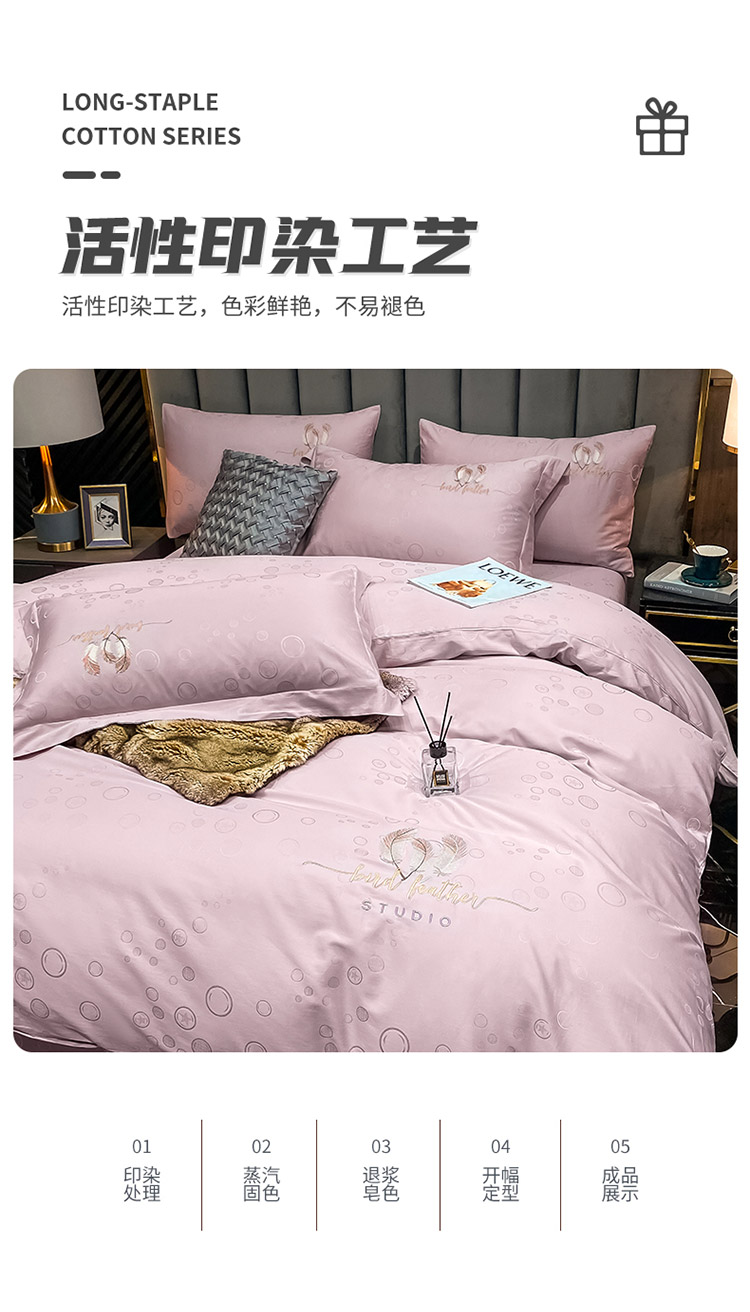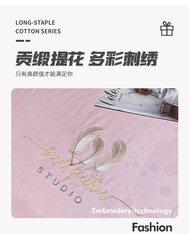 商品名称:品乐家纺 2023新款长绒棉提花刺绣单被套 泡泡-粉