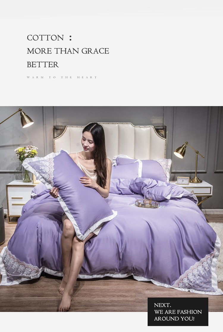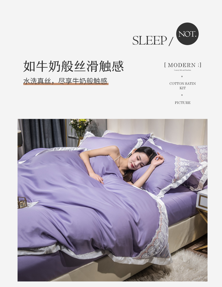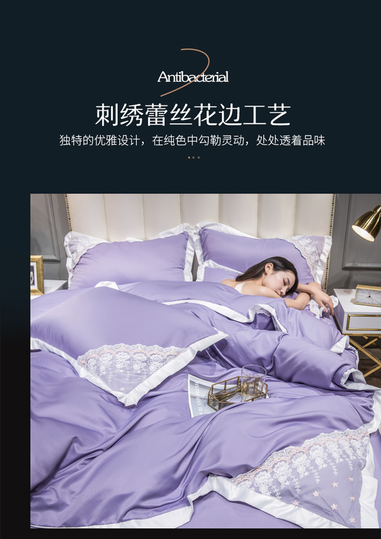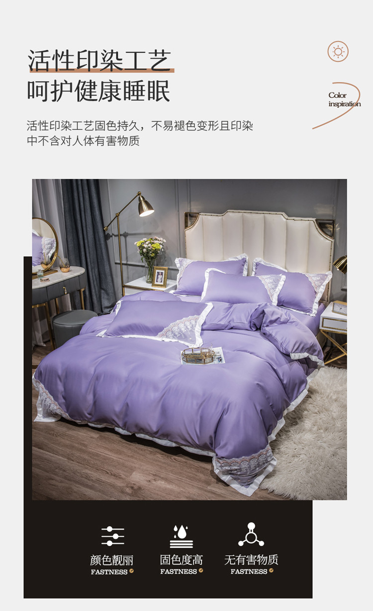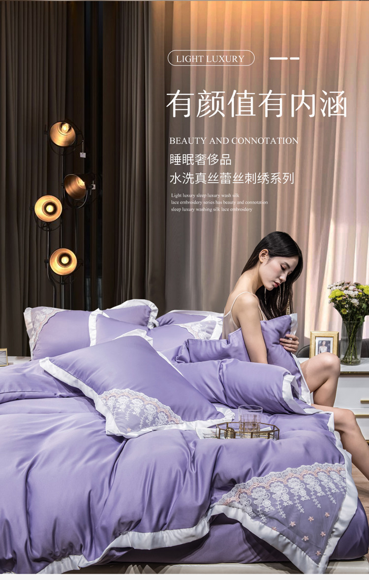 绒世界 2021新款水洗真丝公主四件套 高贵紫