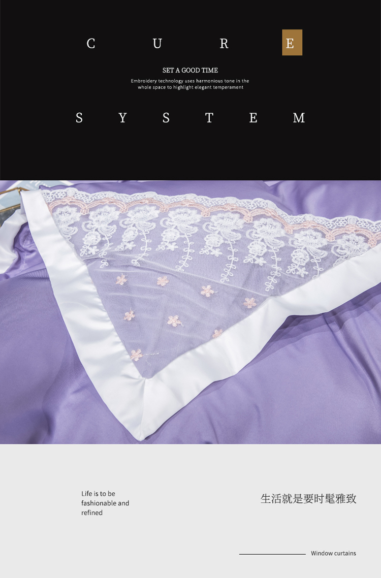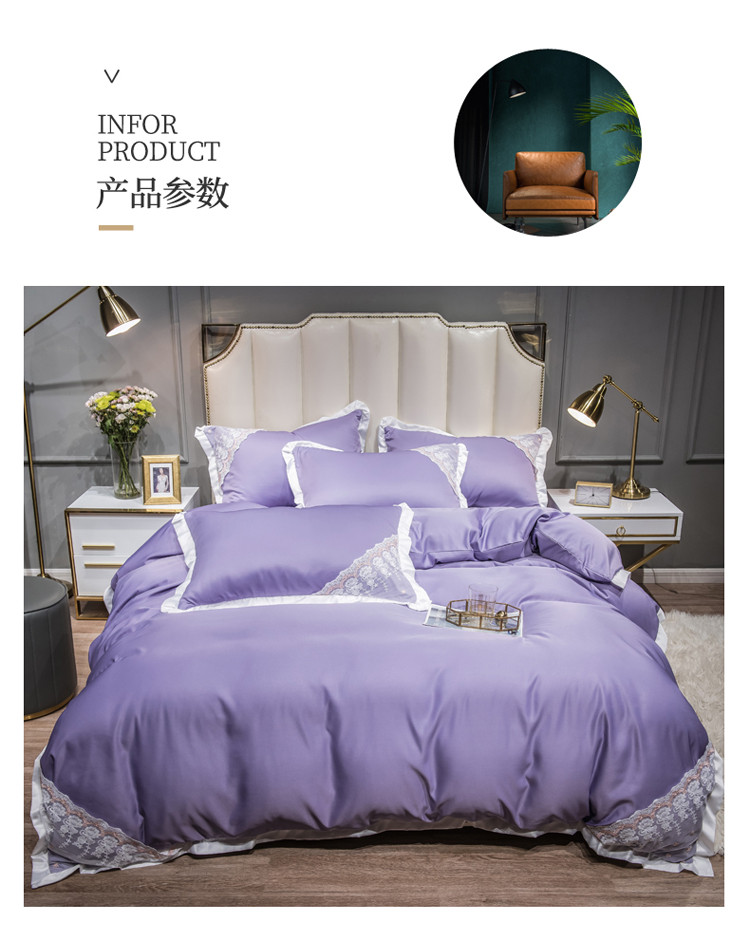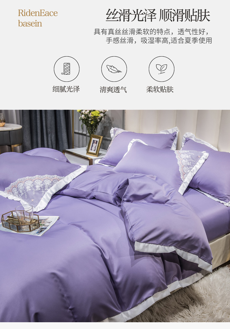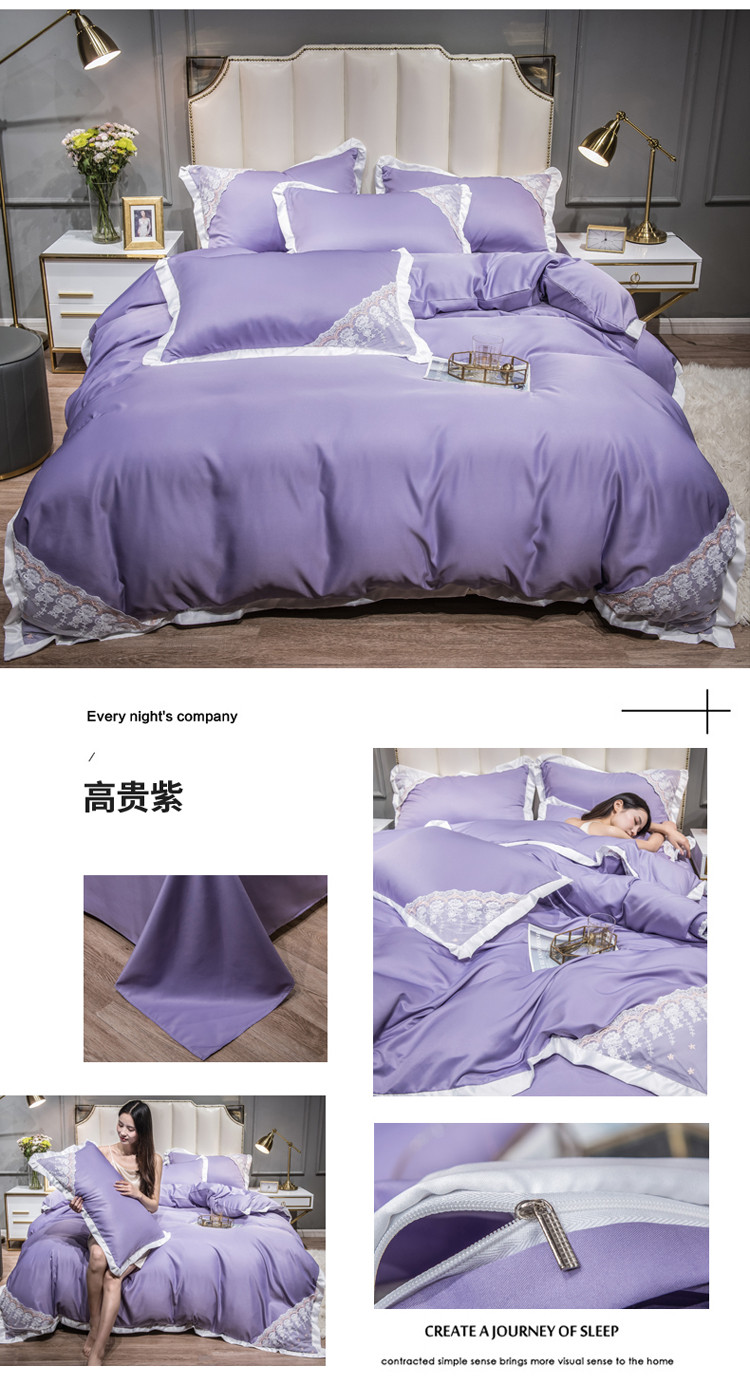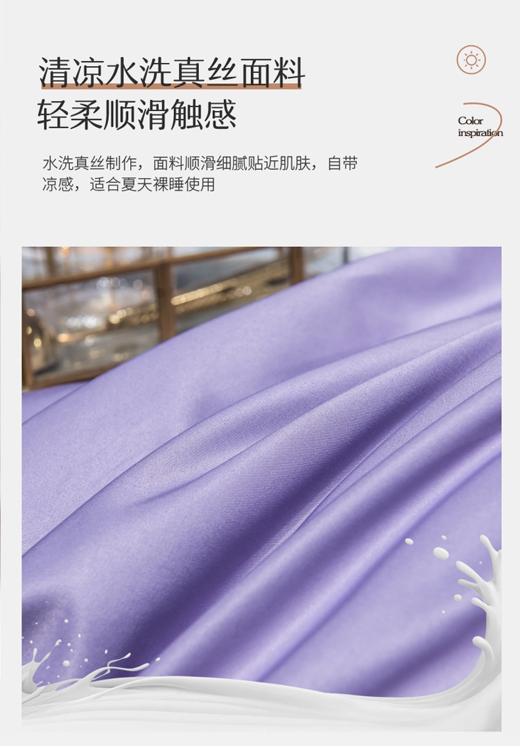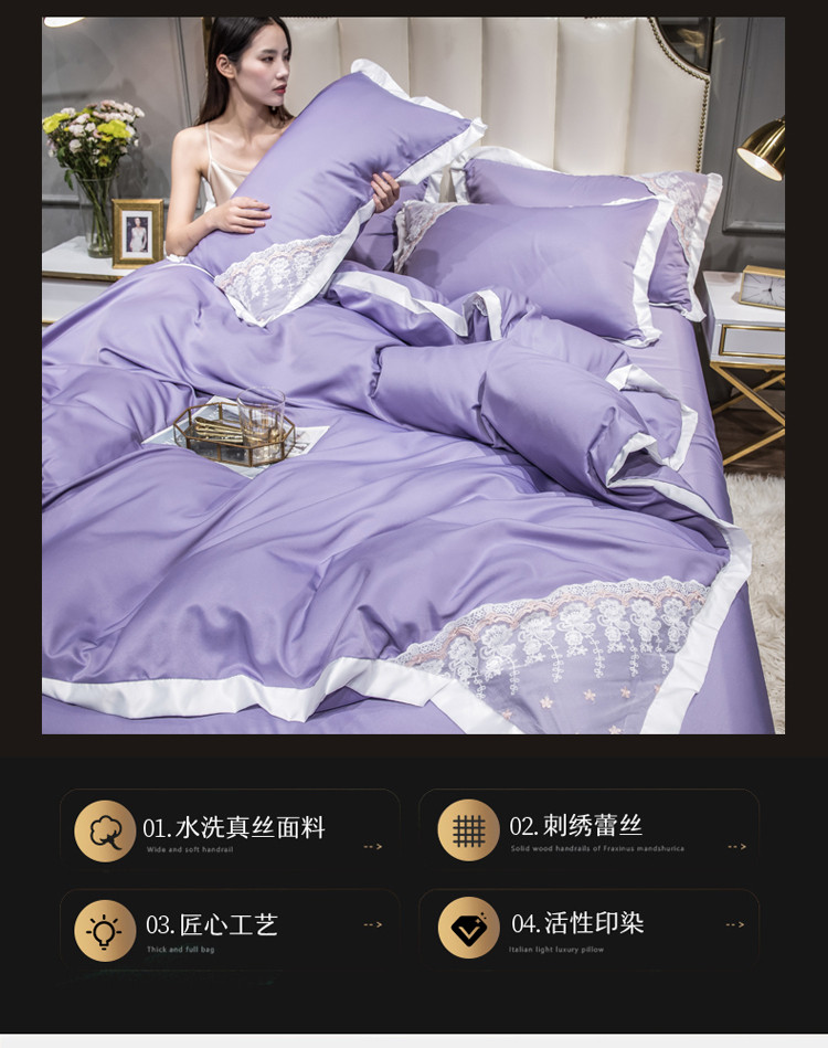 商品名称:绒世界 2021新款水洗真丝公主四件套 高贵紫