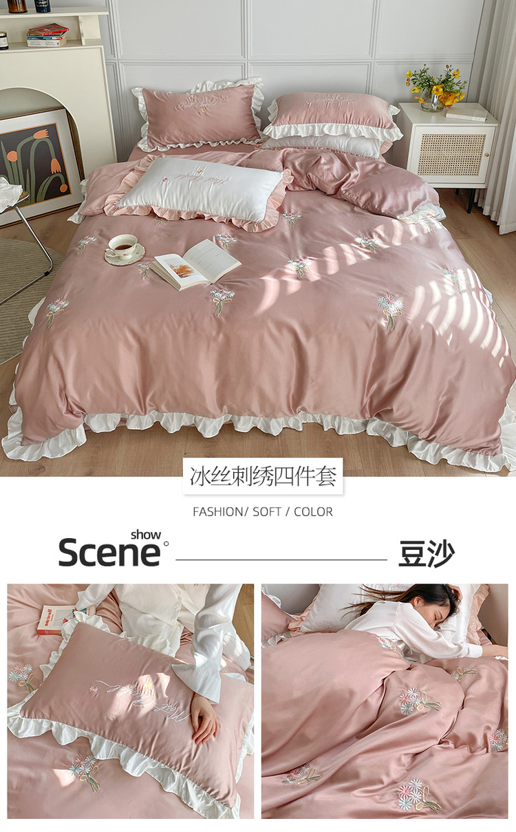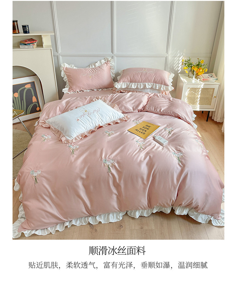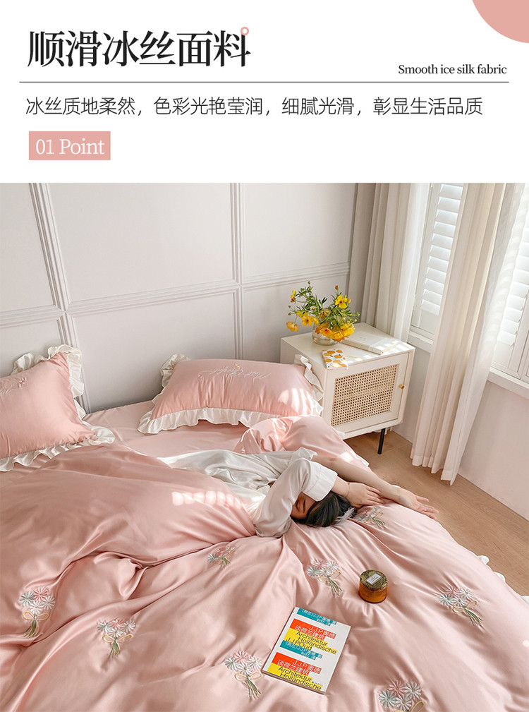 商品名称:(总)优悦生活馆 2021新款冰丝绣花四件套-花溪