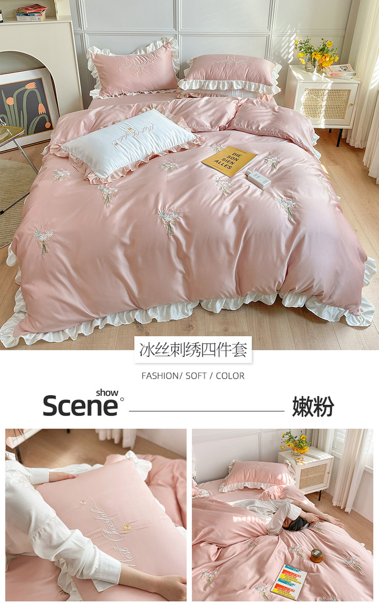 (总)优悦生活馆 2021新款冰丝绣花四件套-花溪
