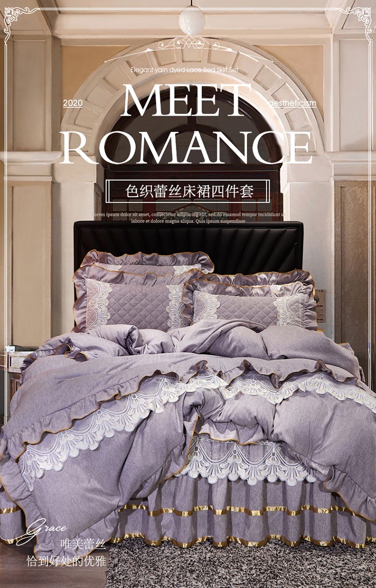 网红馆 2025新款芭莎风情床裙四件套 香芋色