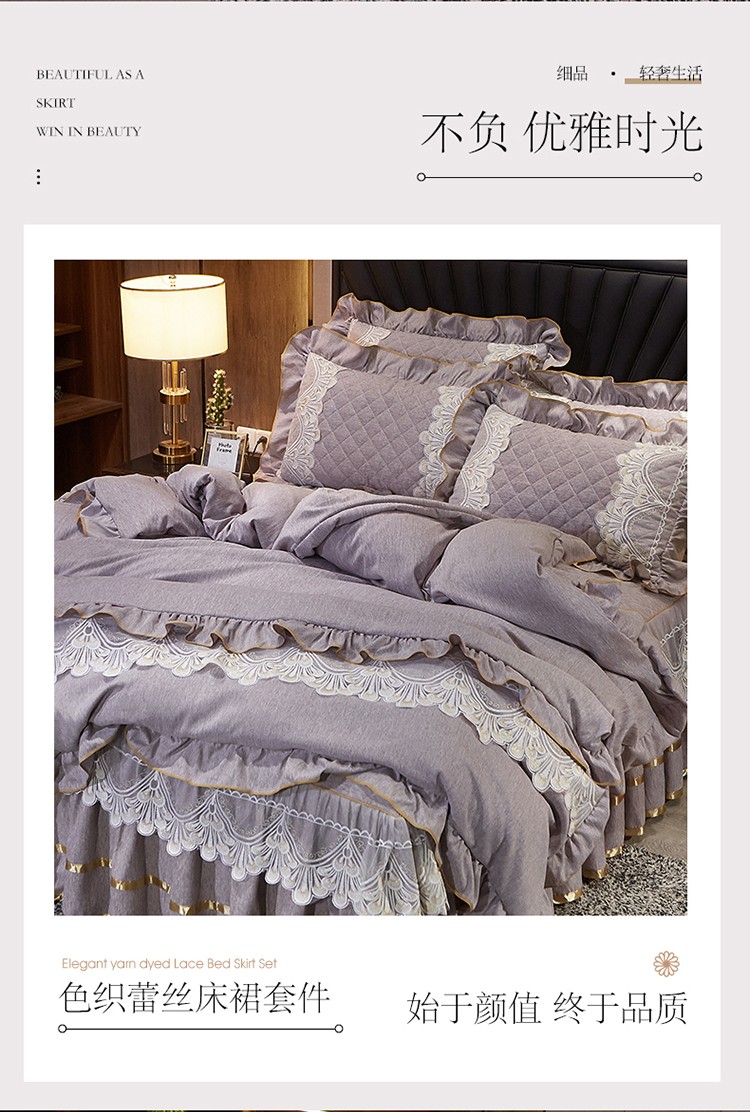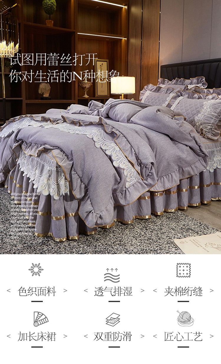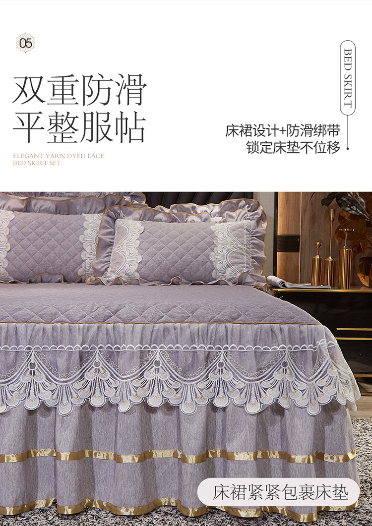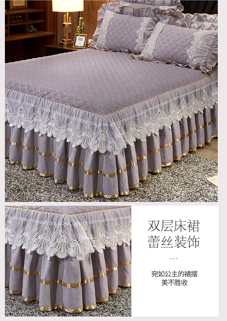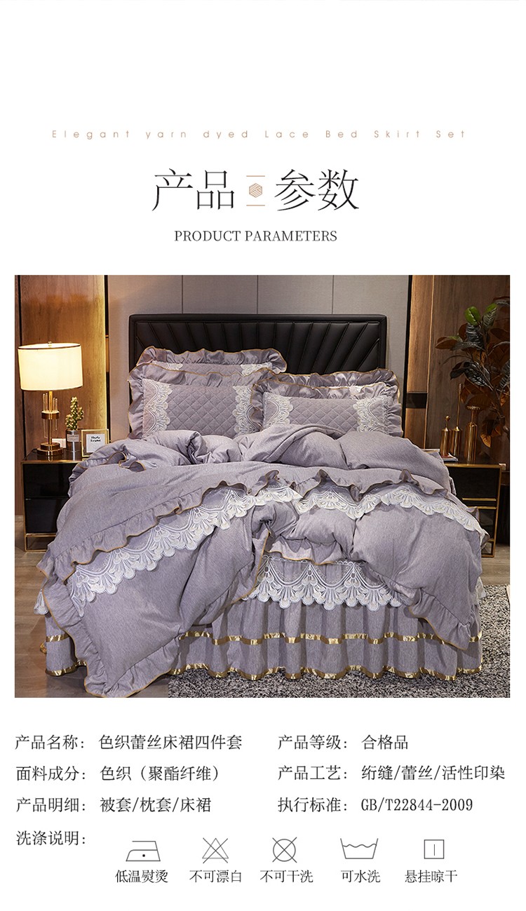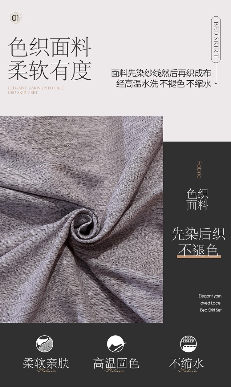 (总)网红馆(ck家纺) 2026新款色织蕾丝边床裙款床笠,宝石蓝,黛绿色,浪漫紫,奶茶色,石青,香妃粉,烟熏灰
