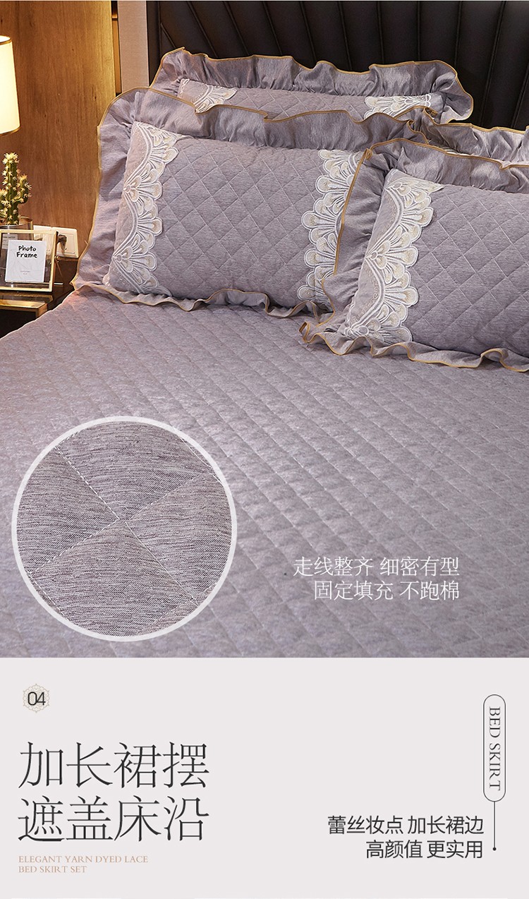(总)网红馆(ck家纺) 2026新款喜芙棉蕾丝夹棉蜜芙蕾床笠,冰清蓝,豆蔻绿,奶油白,凝脂玉,雾灰,樱花粉