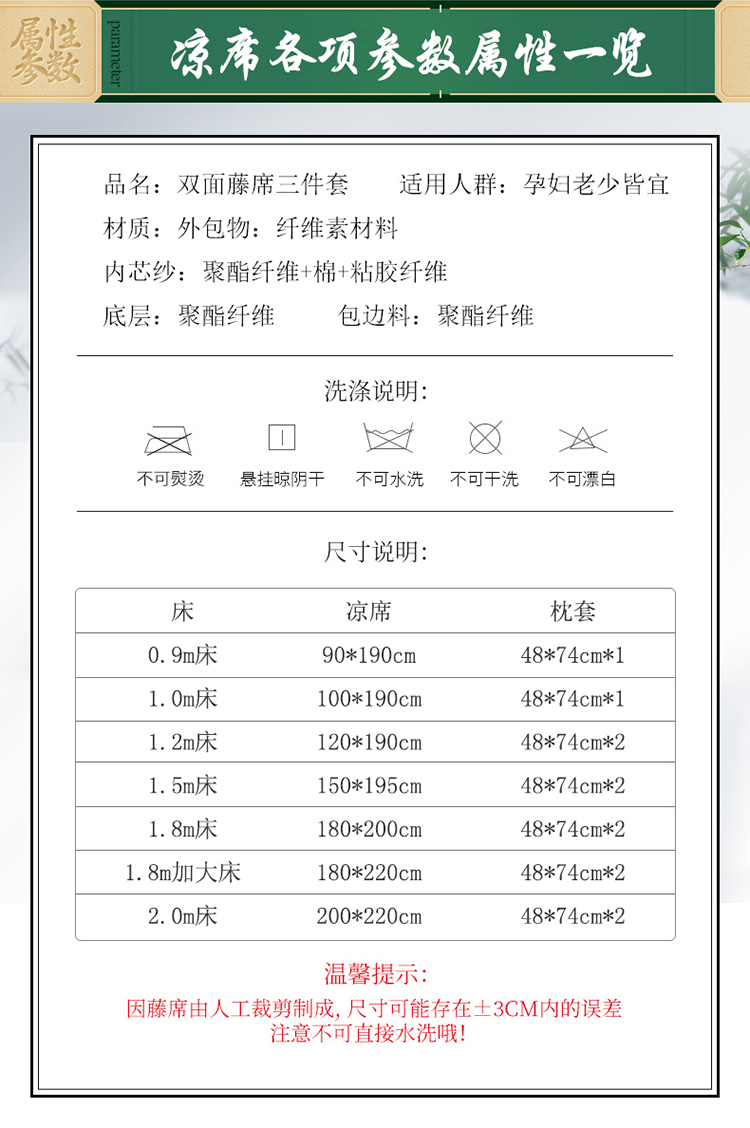 商品名称:恋佳2025新款双面藤席三件套-步步高双面藤席