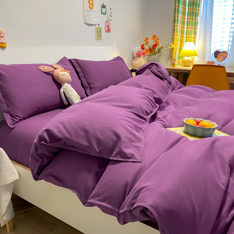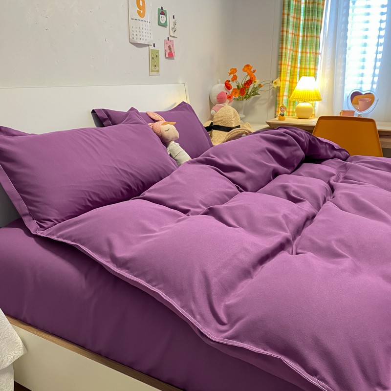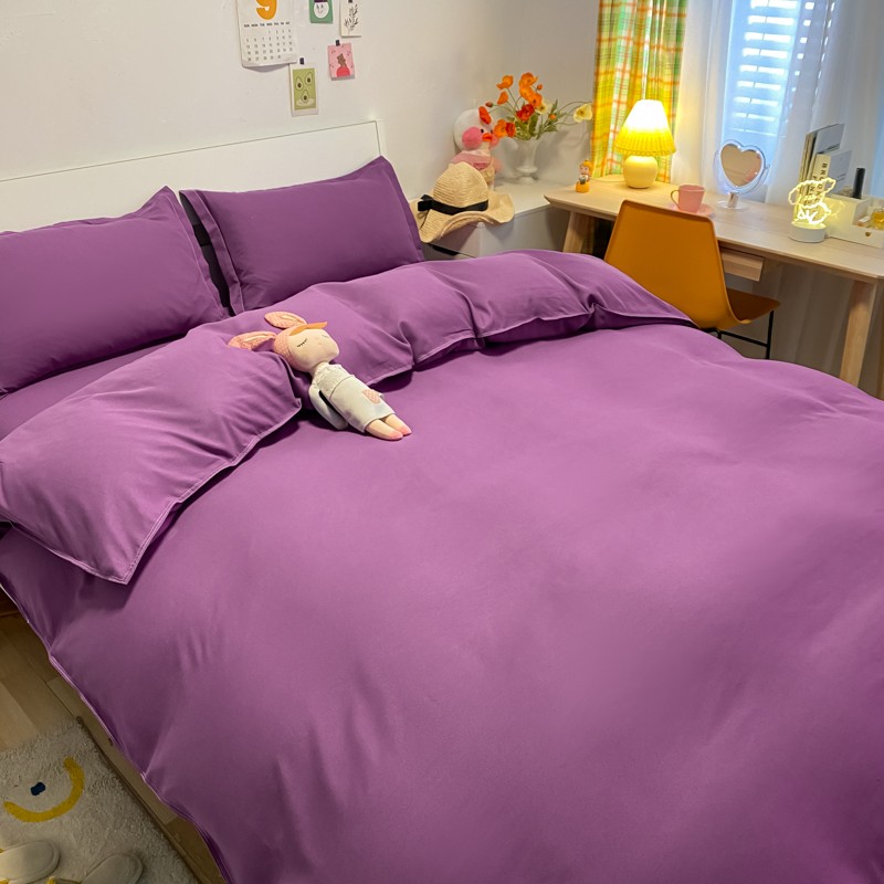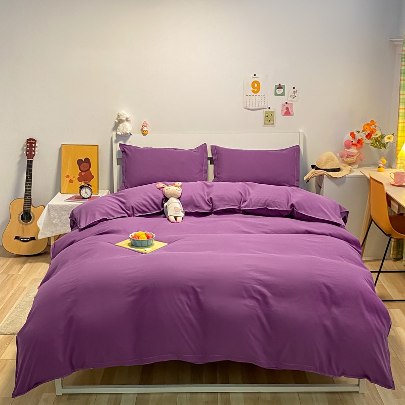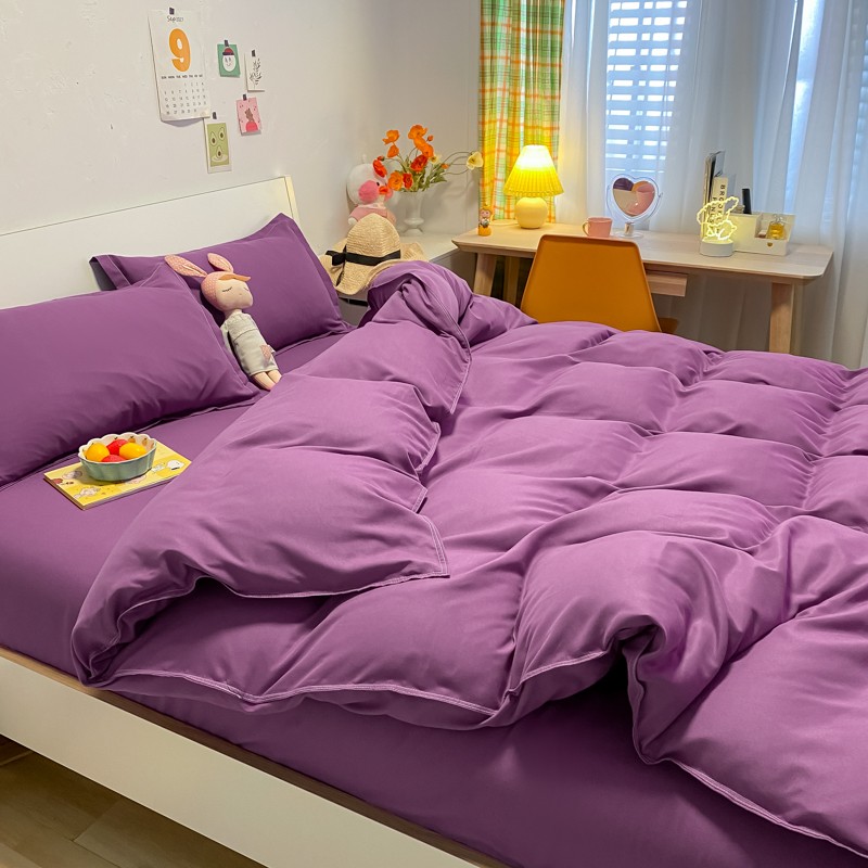 贝拉梦2021新款美棉纯色系列四件套-曼妮紫