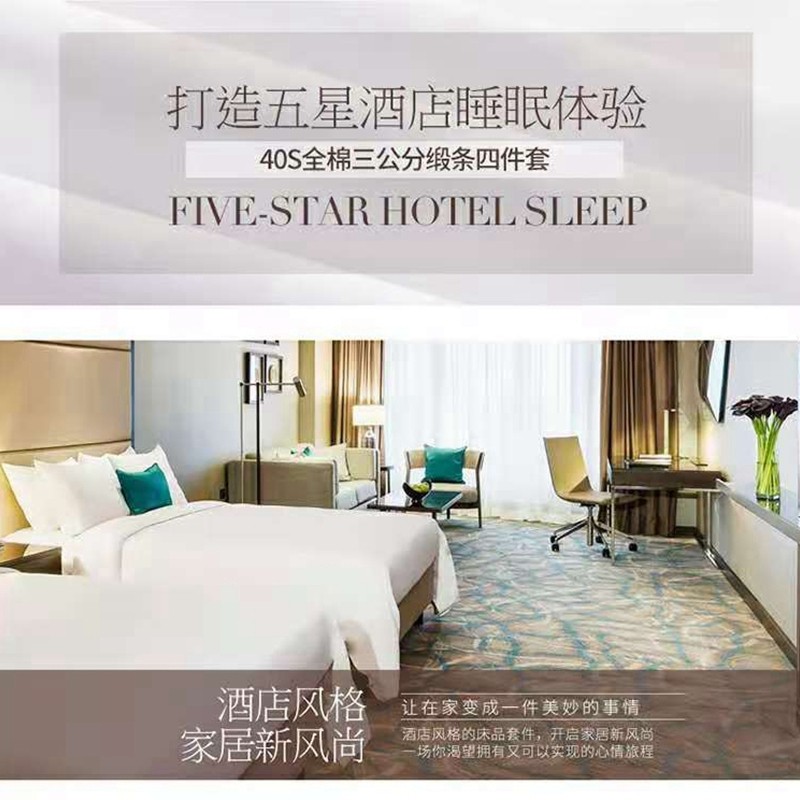 当前位置: 91家纺网 > 商品网购 > 床品套件 > 四件套 > 全棉普通四件套 > (总)煌朝 两公分涤棉宾馆缎条宾馆四件套