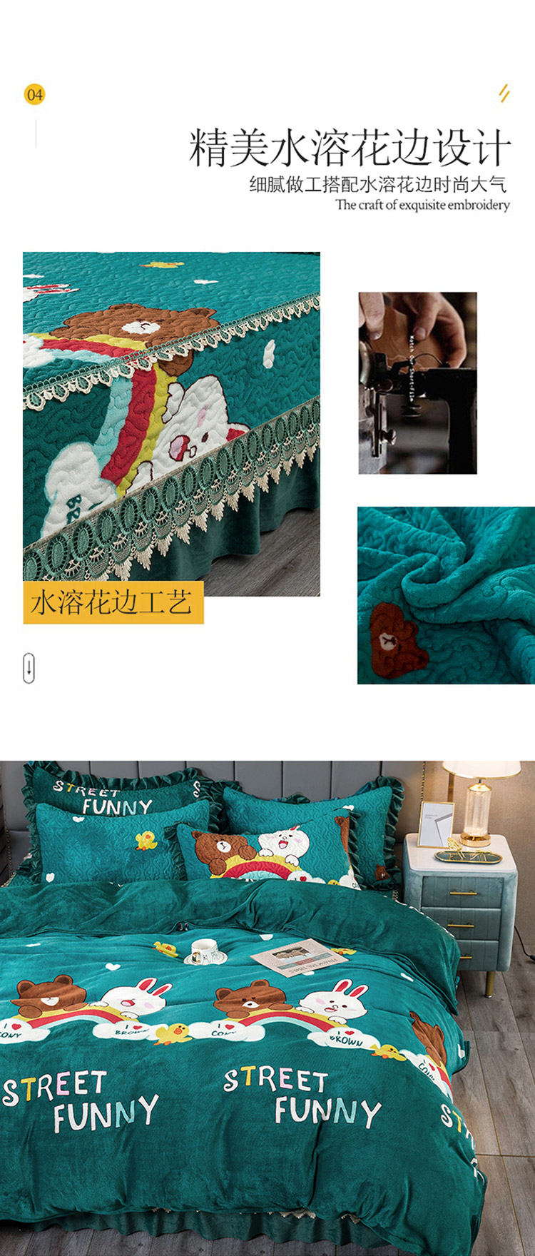 (总)冬然家纺 2025新款高克重牛奶绒蕾丝花边床盖系列,水墨茶花,朵朵花香,肌理纹-灰,肌理纹-咖,经典条纹,卡皮巴拉,可可西里,楼兰花海,奶油布丁,幸运点点