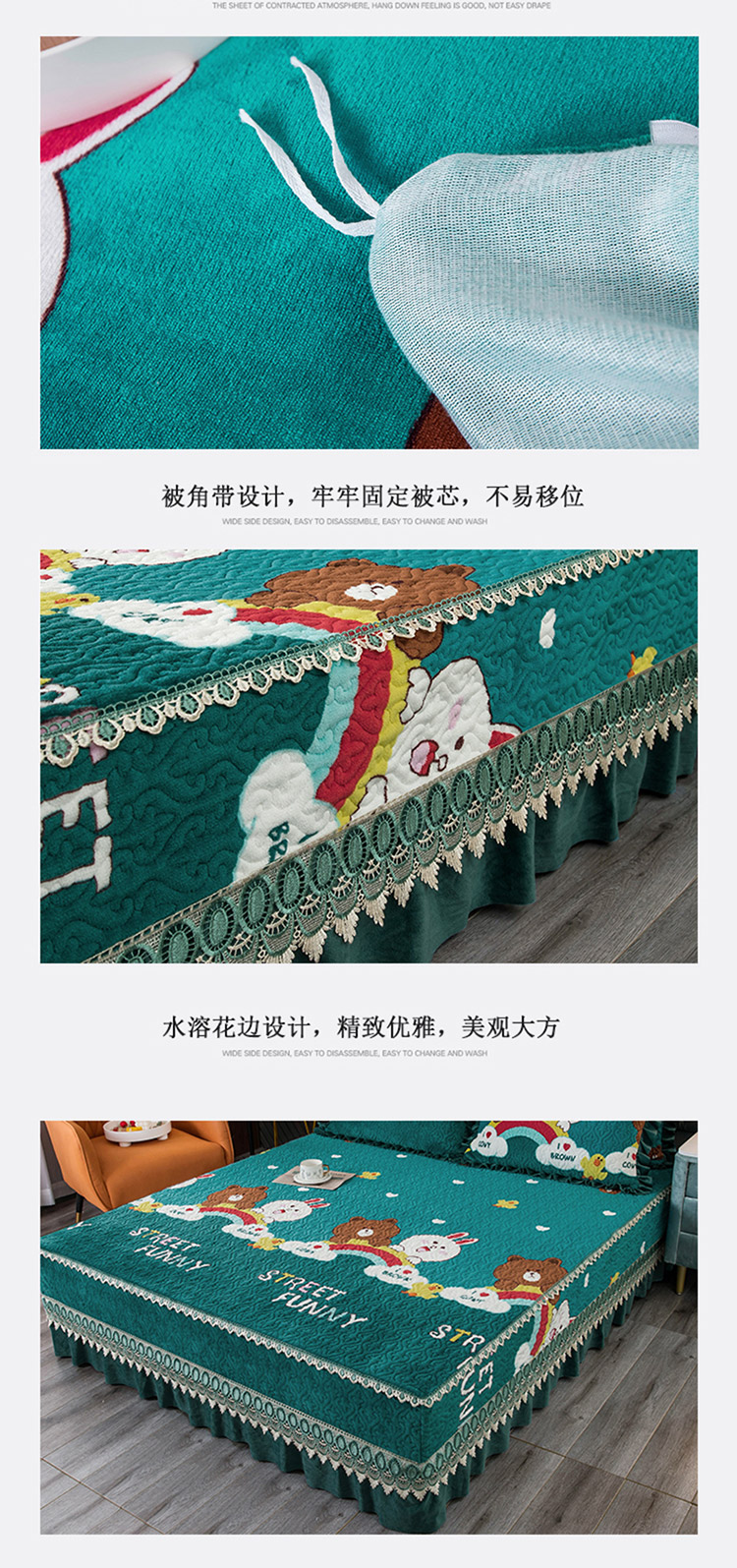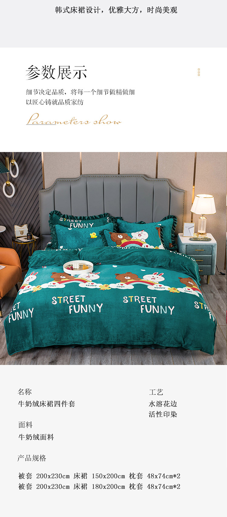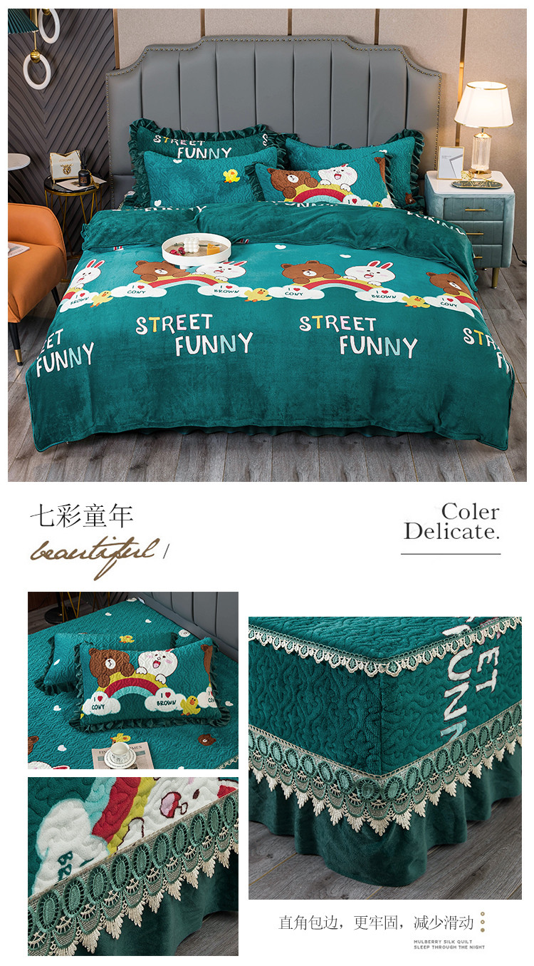 商品名称:(总)冬然 2024新款床盖牛奶绒夹棉床裙四件套单床裙单被套