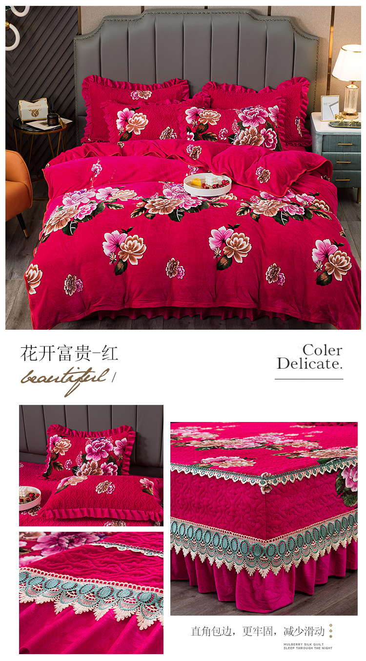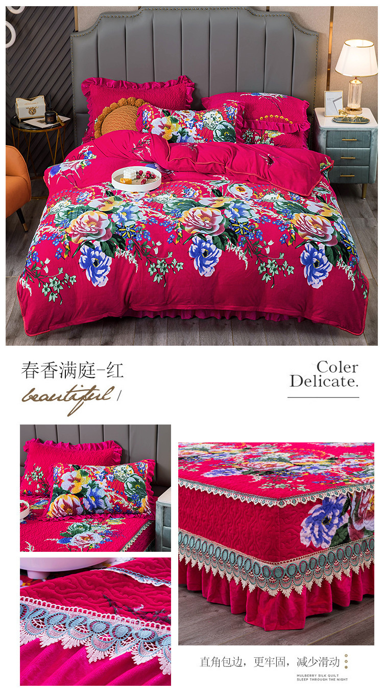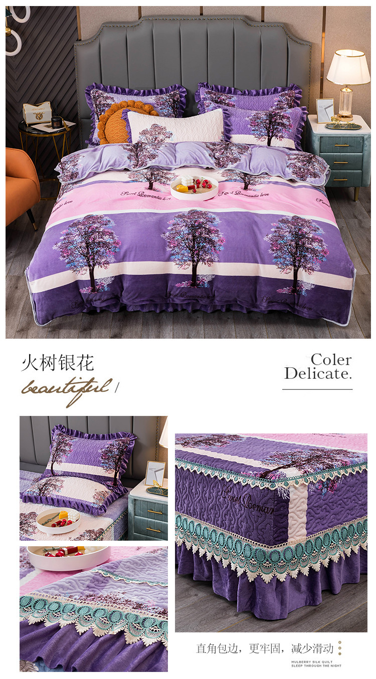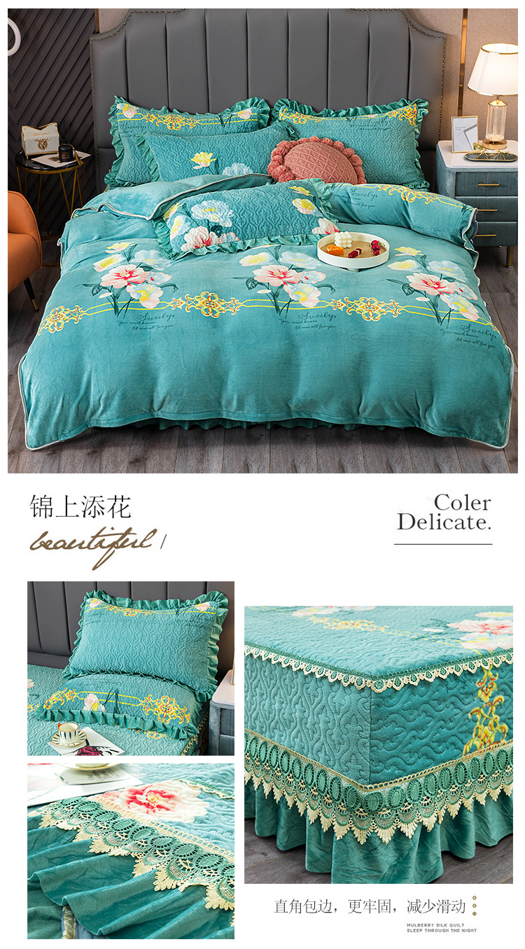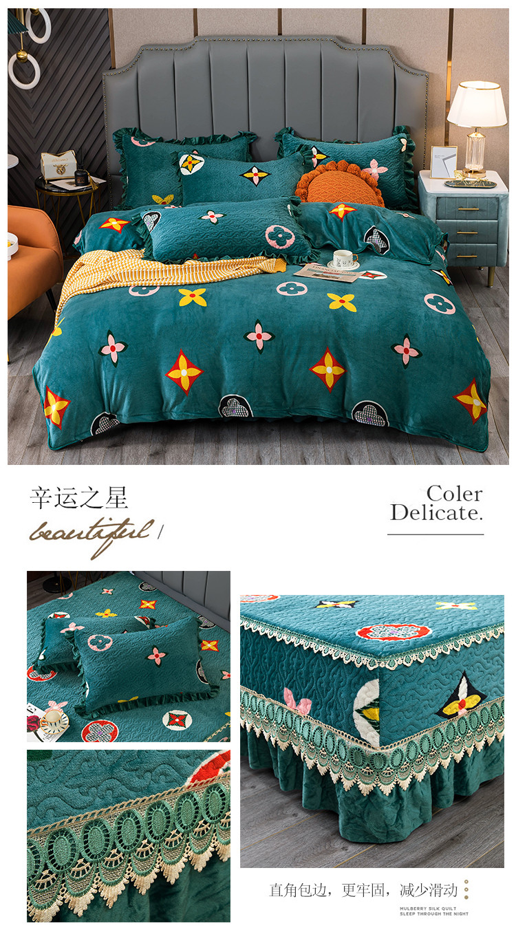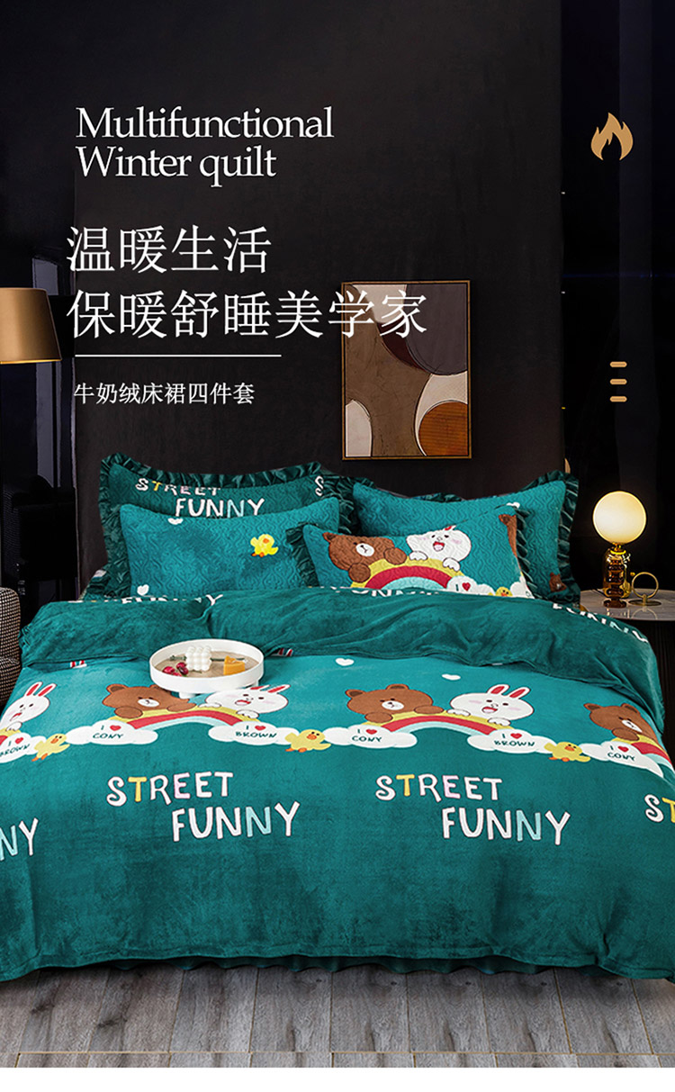 (总)冬然 2024新款床盖牛奶绒夹棉床裙四件套单床裙单被套