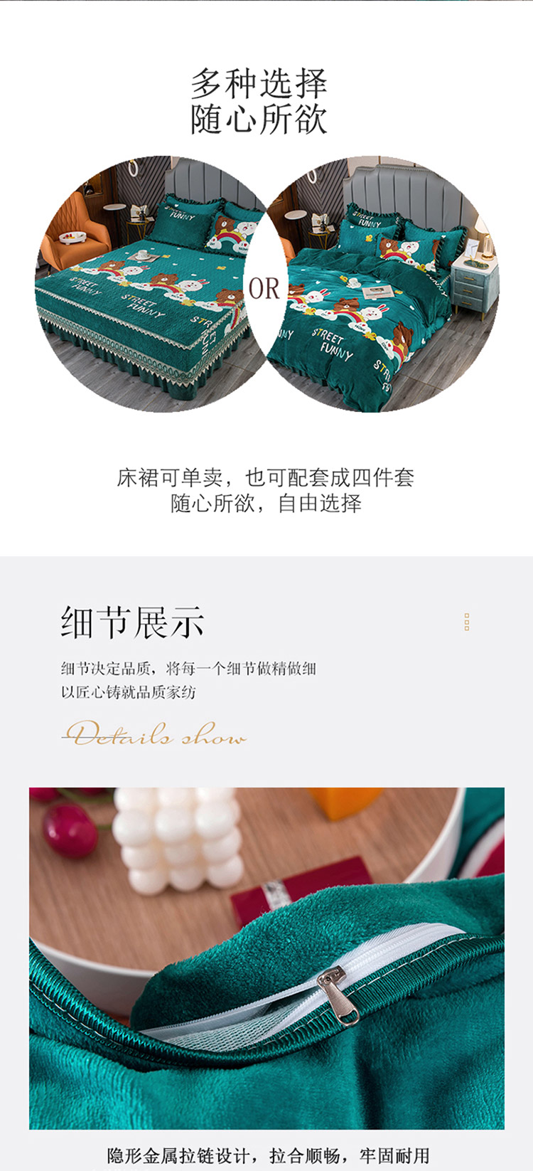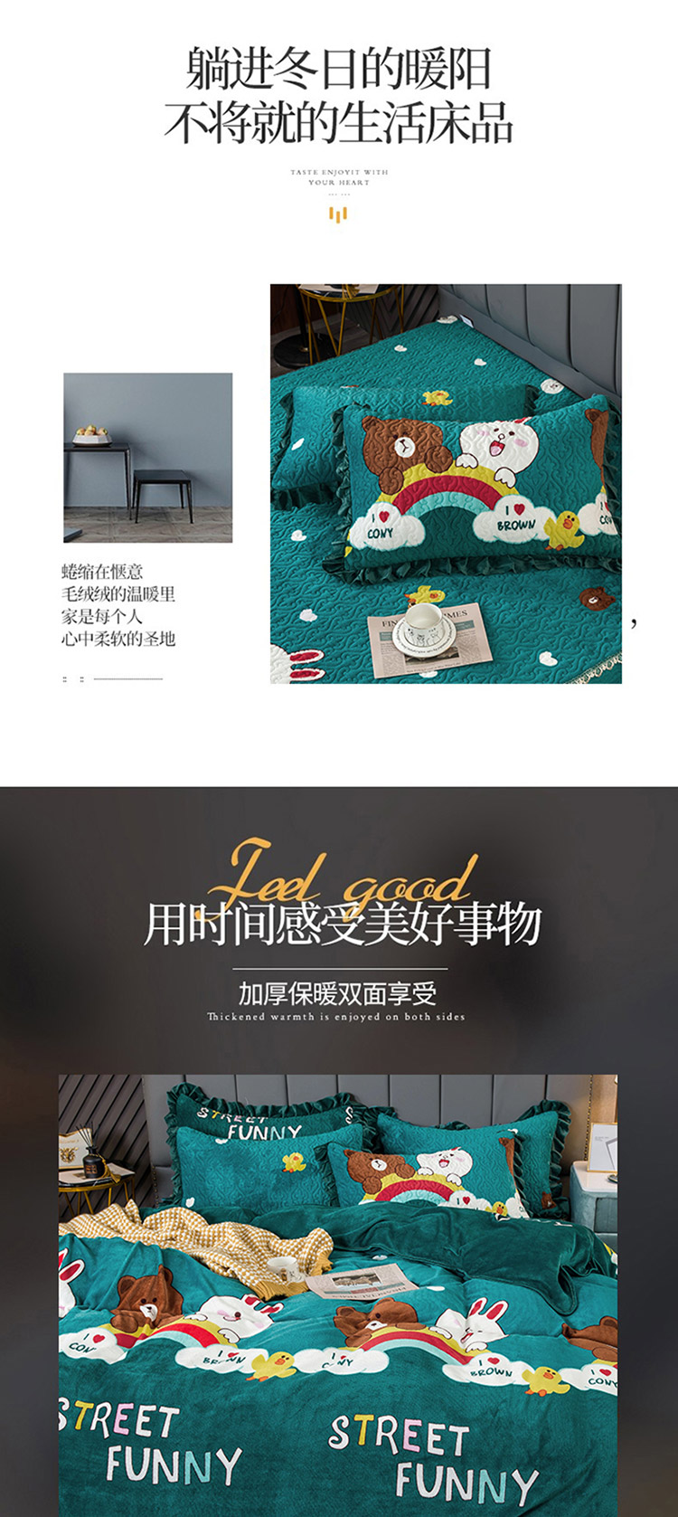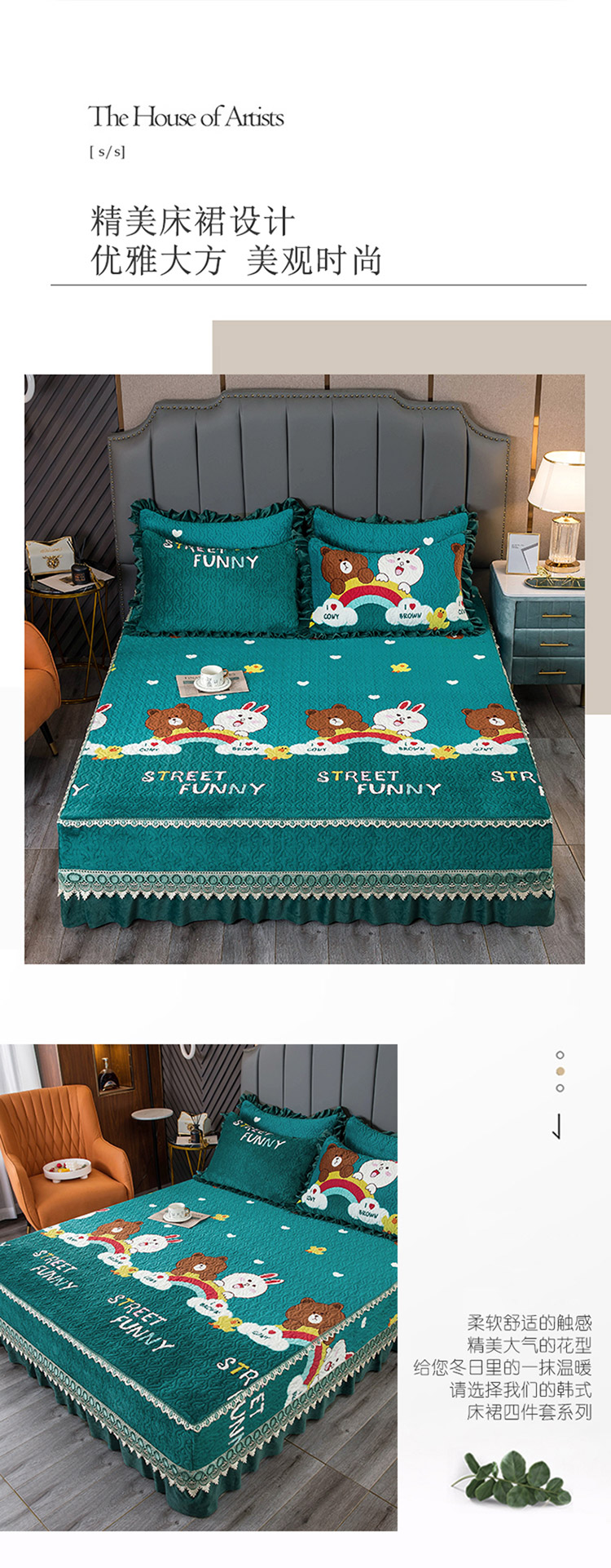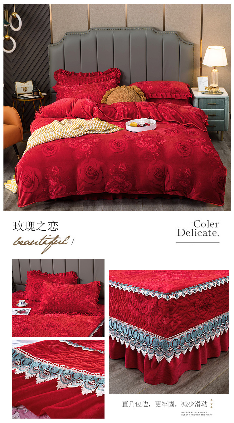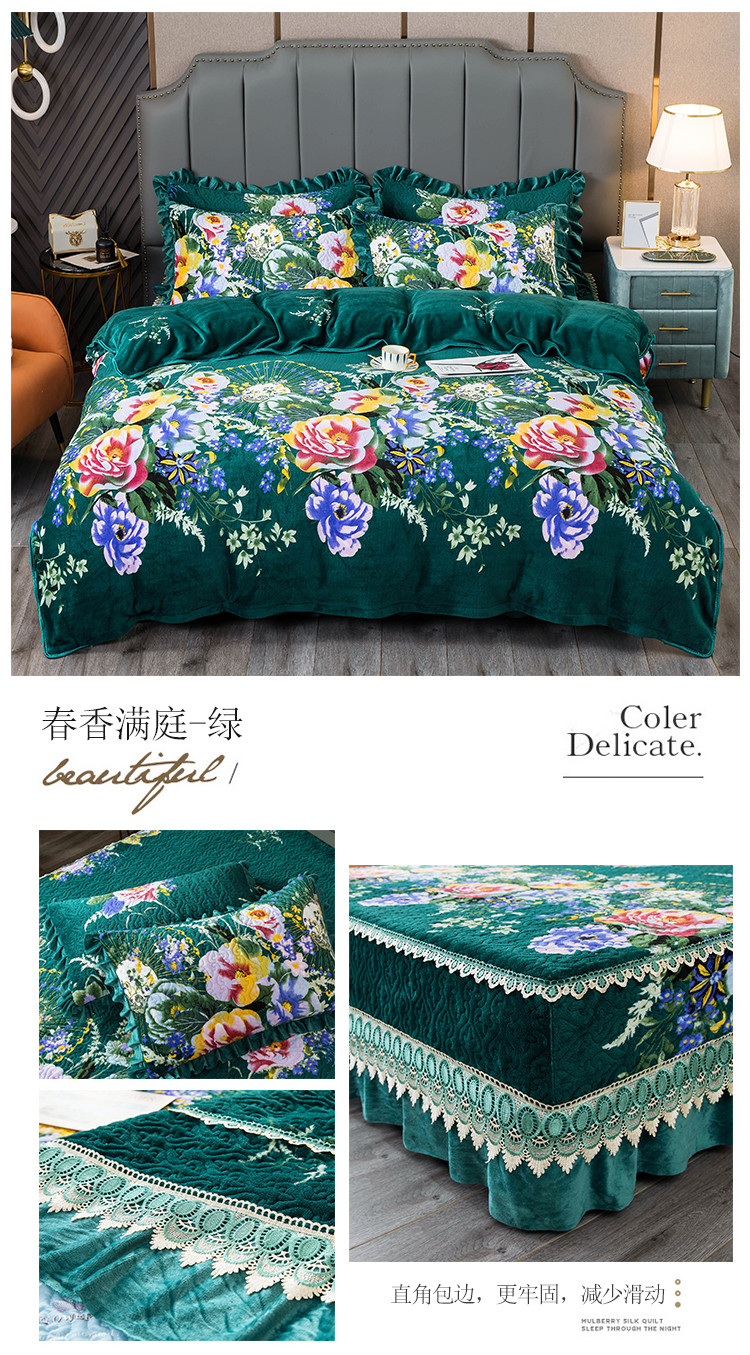 (总)冬然 2024新款床盖牛奶绒夹棉床裙四件套单床裙单被套