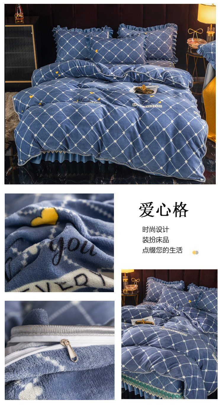 冬然 2022新款床盖牛奶绒夹棉床裙四件套单床裙单被套爱心格,爱心格