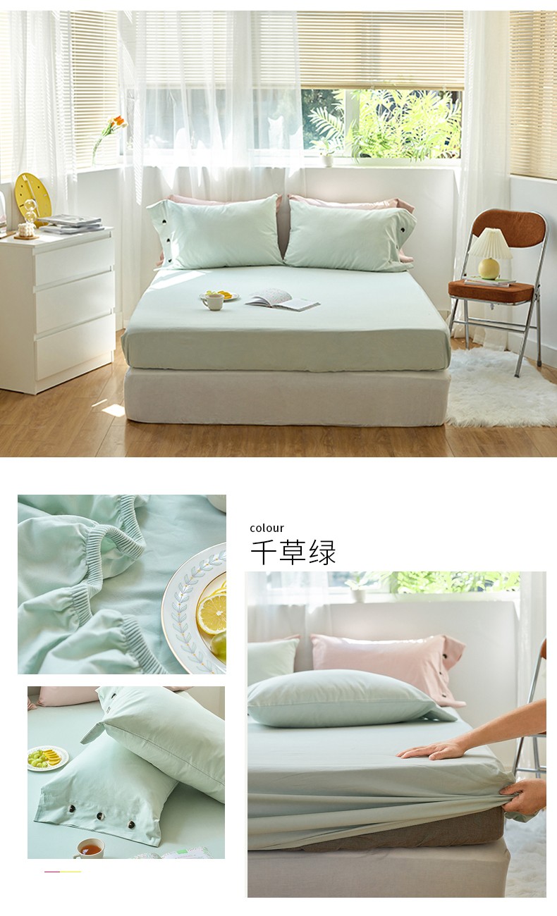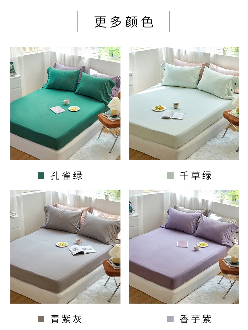 60支床笠长绒棉 A类 床笠纯色三件套床盖床单可定制四季款,黛雅粉,空间蓝,松柏绿,天云灰,珍珠白,薄荷绿,深空灰,香槟金,香妃玉,柔云紫,毛毡礼袋