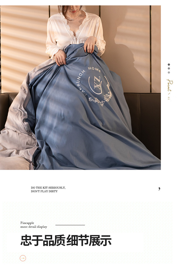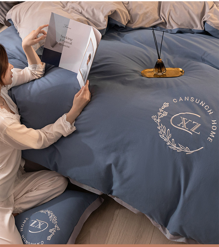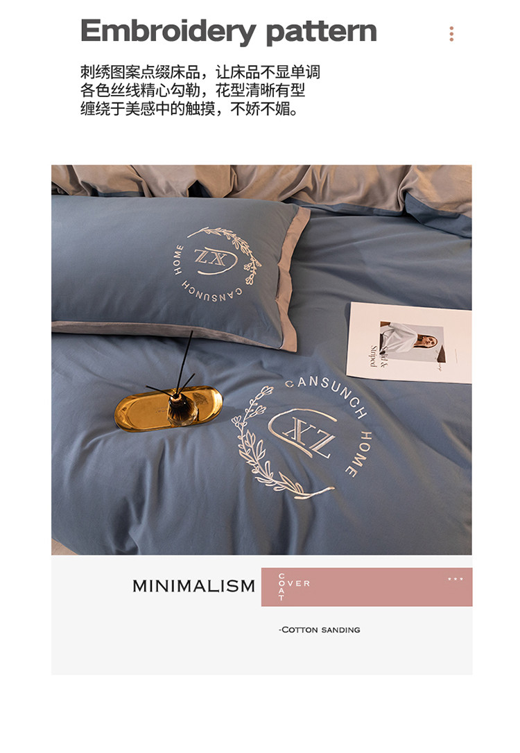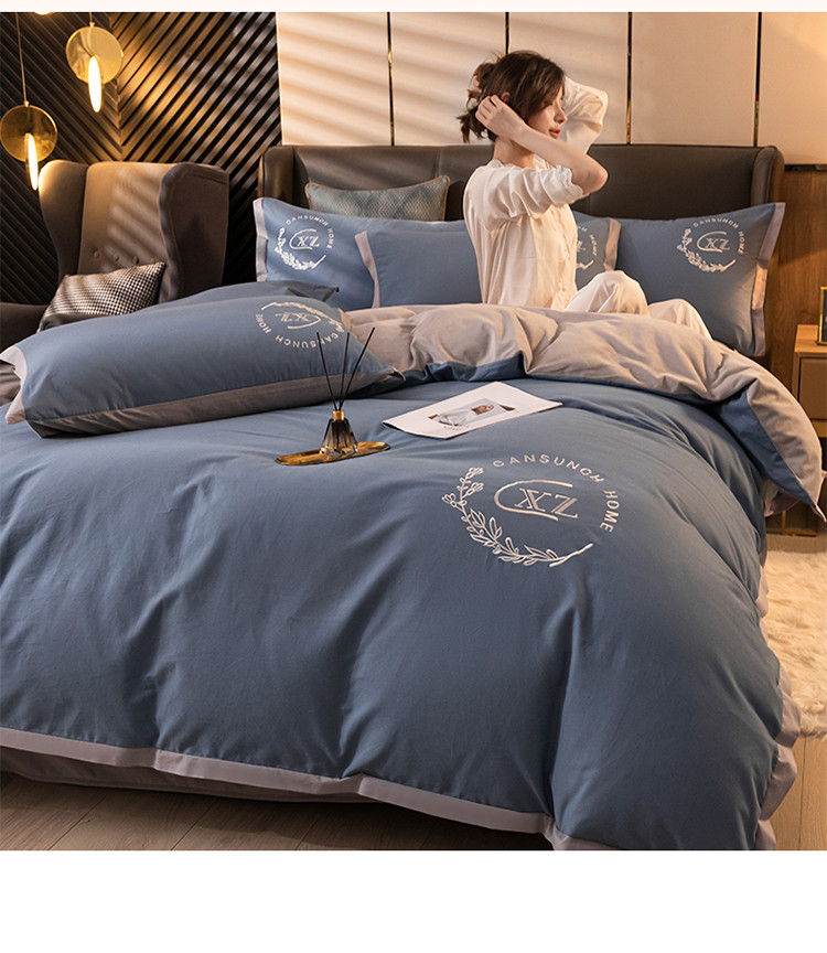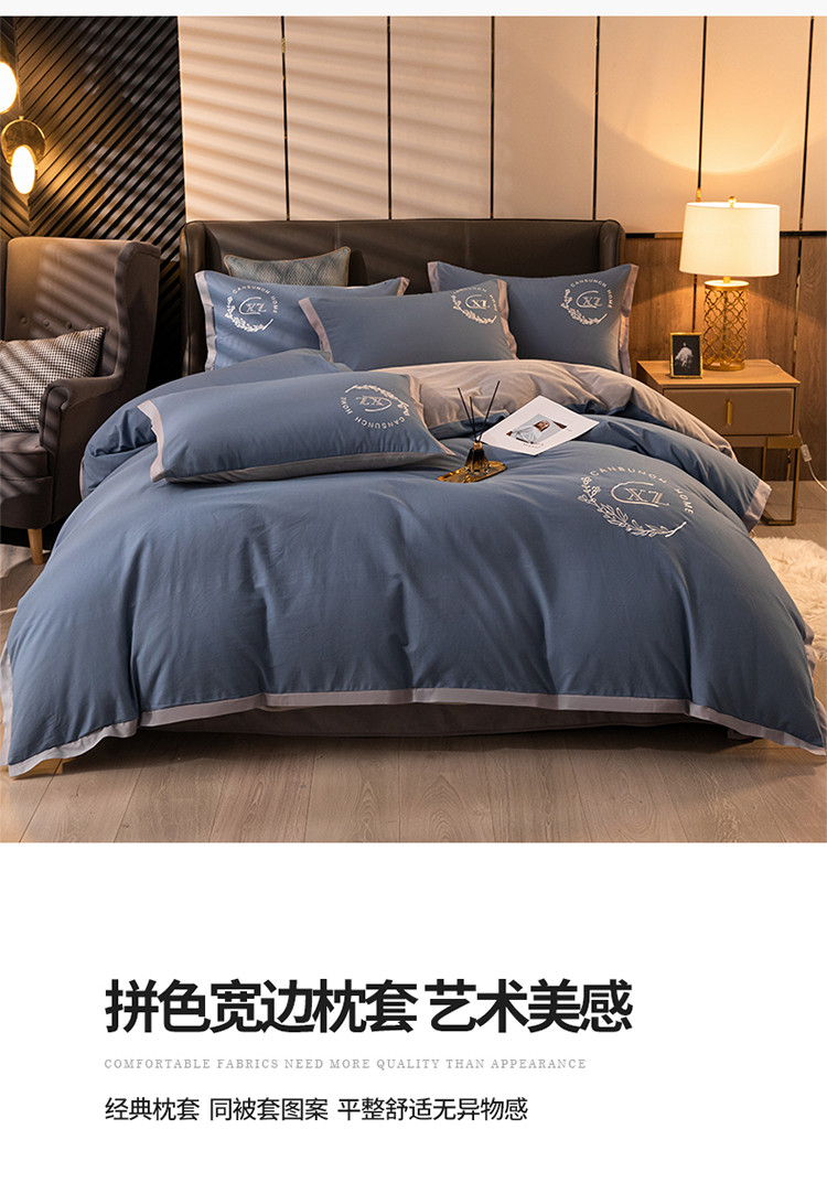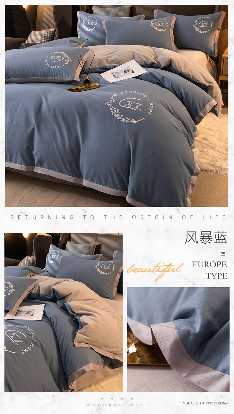 商品名称:蓝米卡夫 2024冬季升级款保暖全棉磨毛牛奶绒刺绣四件套 风暴蓝
