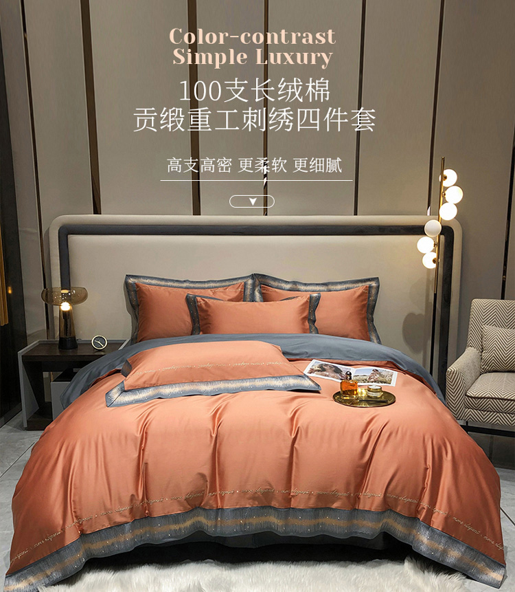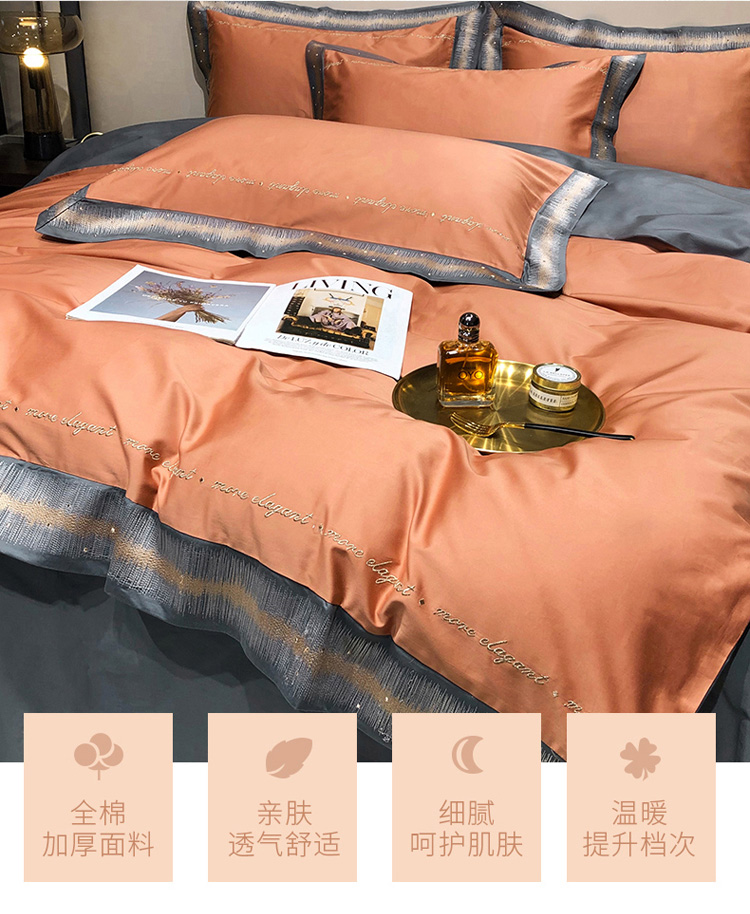 爱缦 2021新款星空系列100支长绒棉奥棉四件套 西柚桔