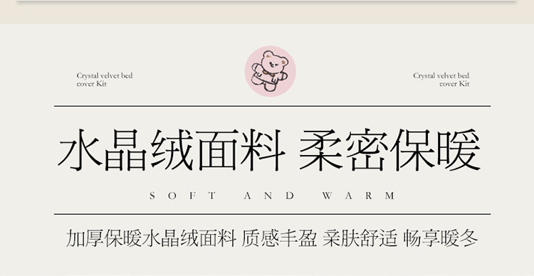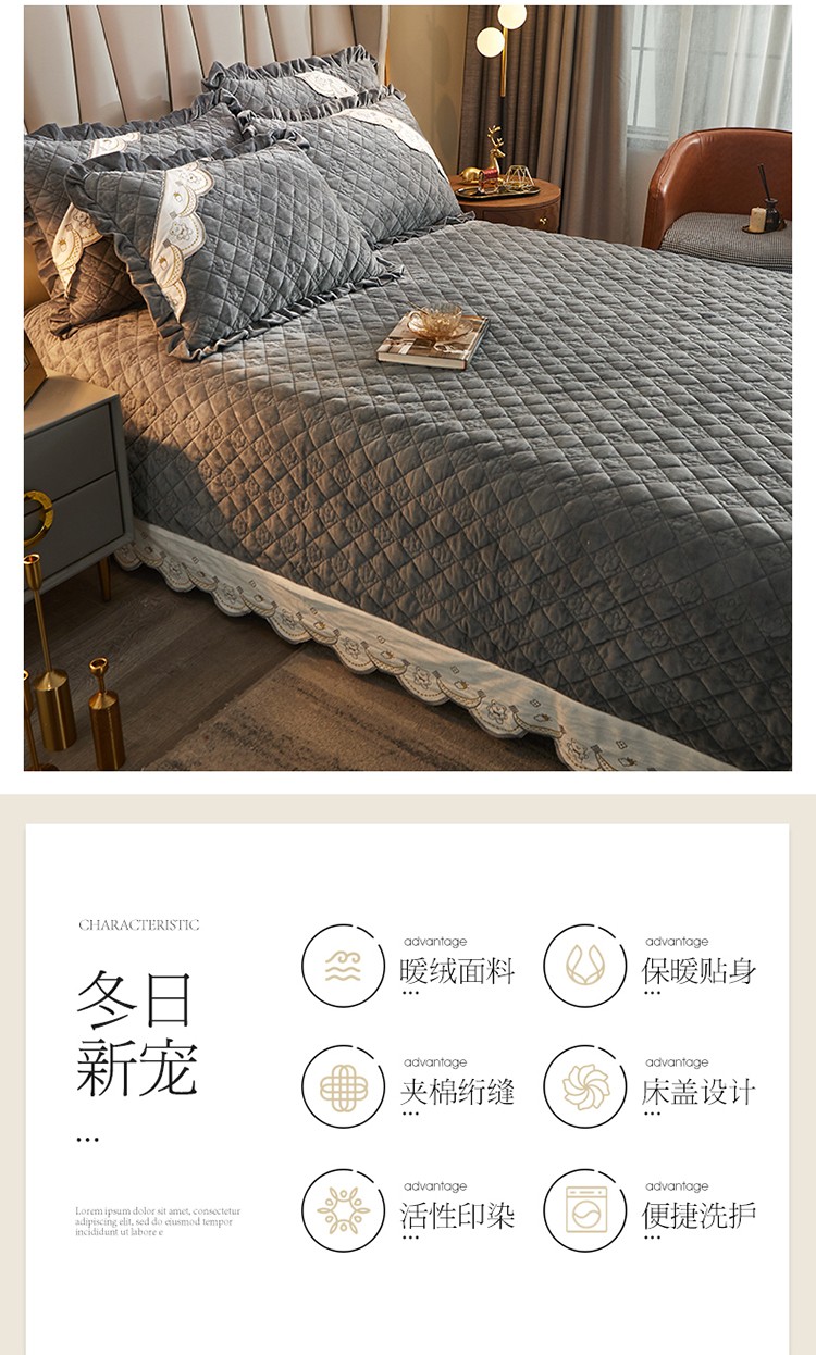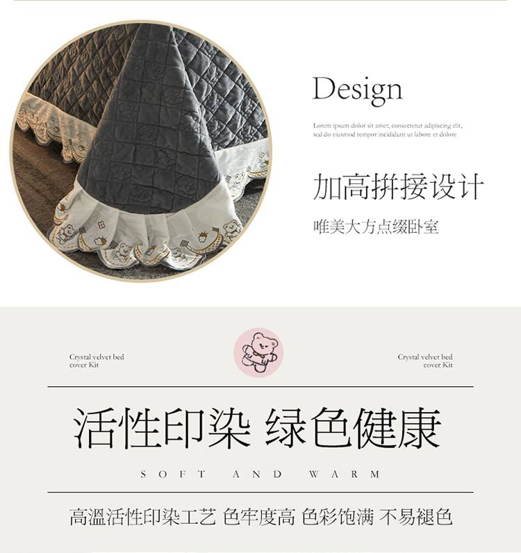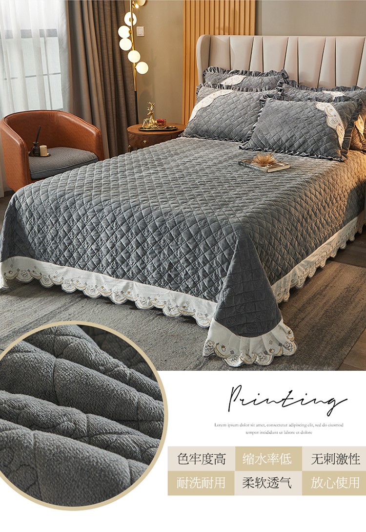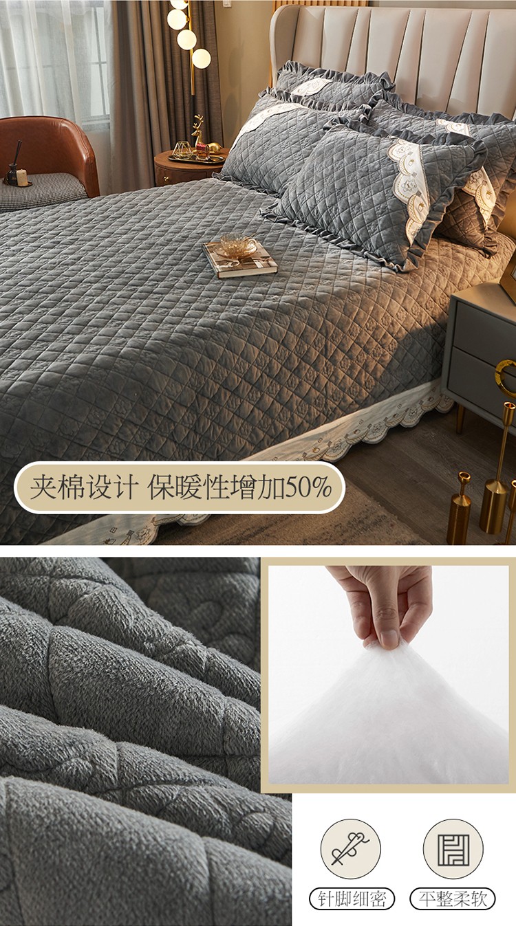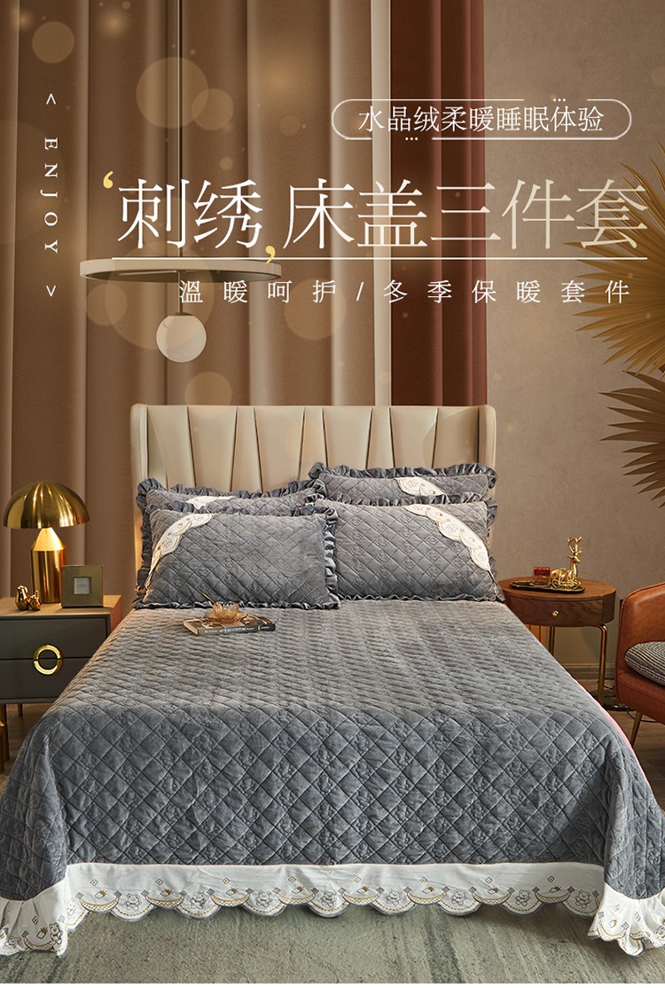 商品名称:宜凡家纺 2021新款水晶绒夹棉绗缝床盖三件套快乐小熊-海灰