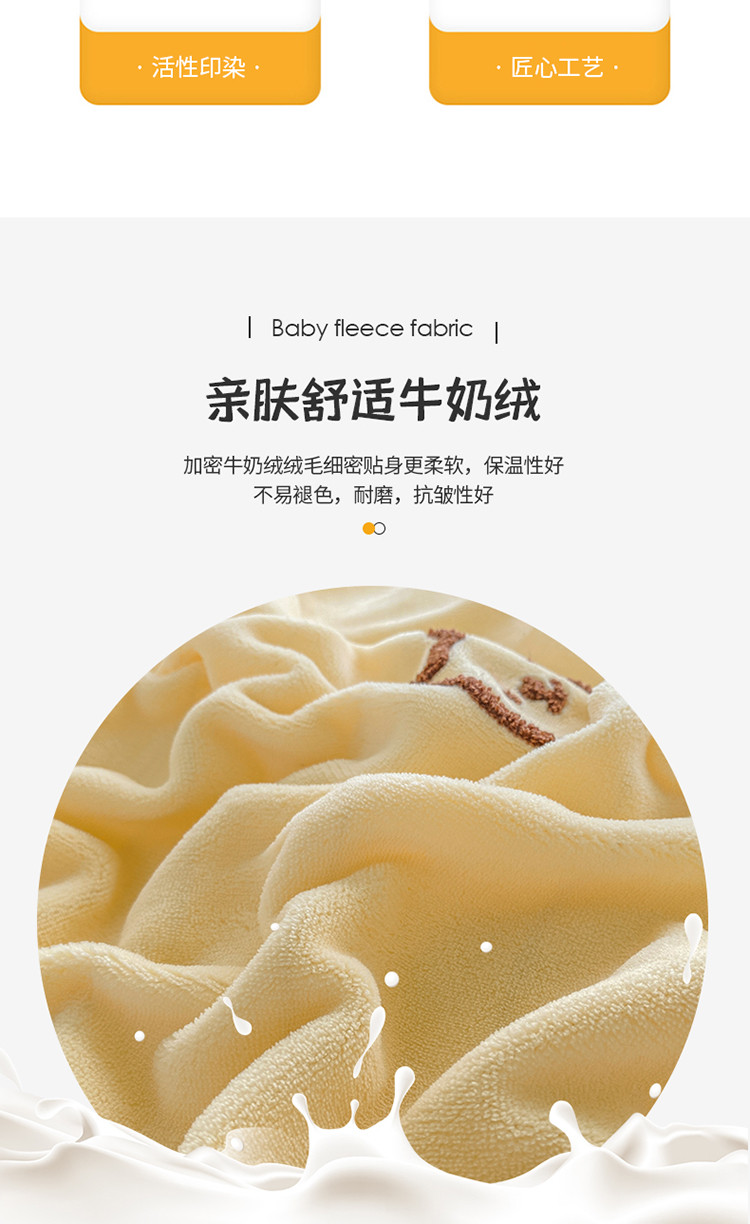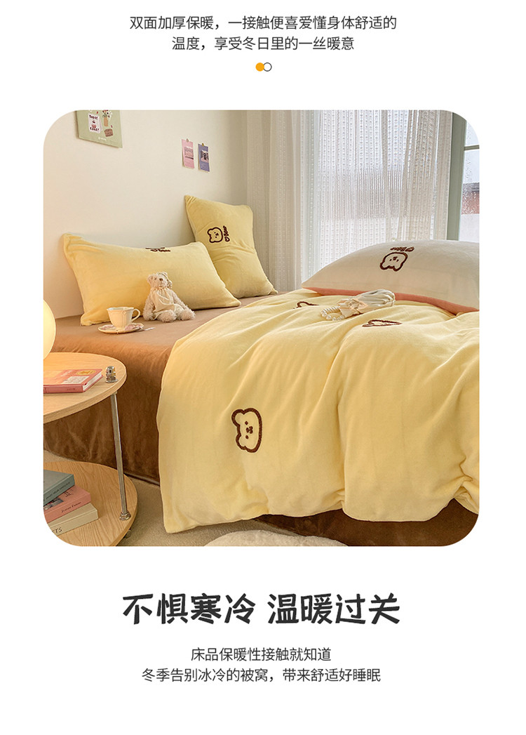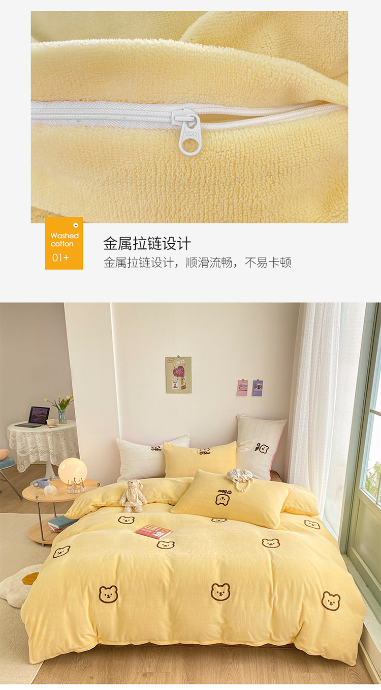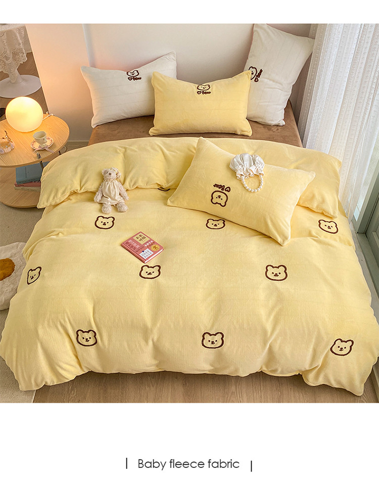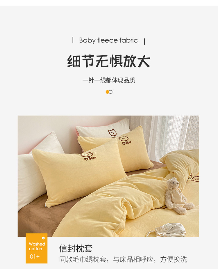 商品名称:雅居纺 2022新款牛奶绒毛巾绣四件套拍摄风格2 可爱熊-黄咖