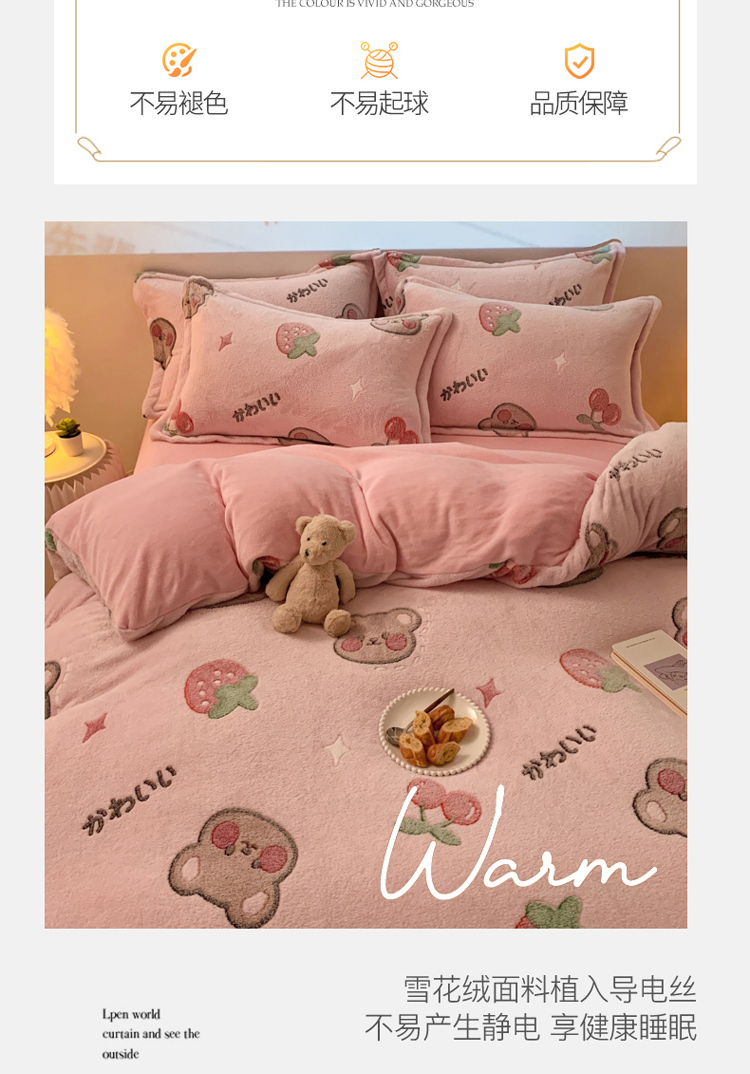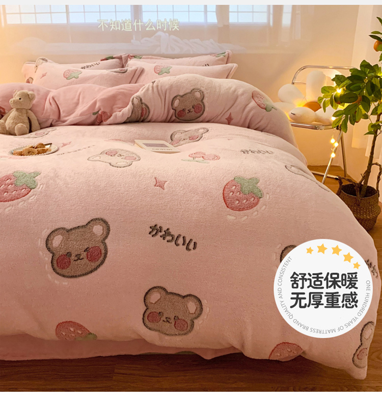 商品名称:慕尚 2022新款5D雪花绒单品被套 草莓熊