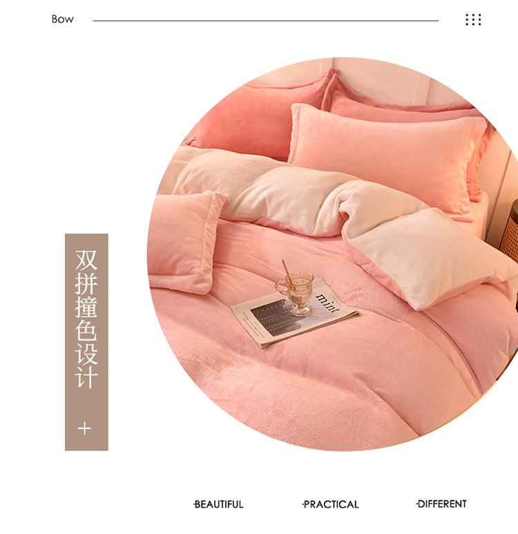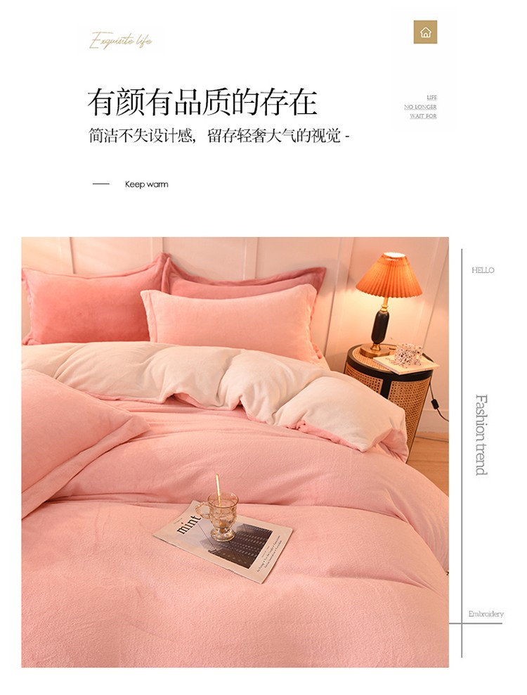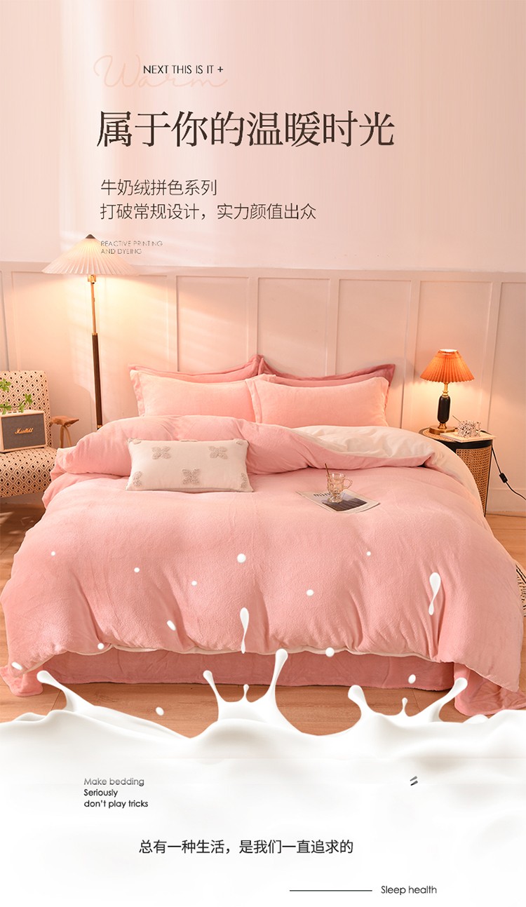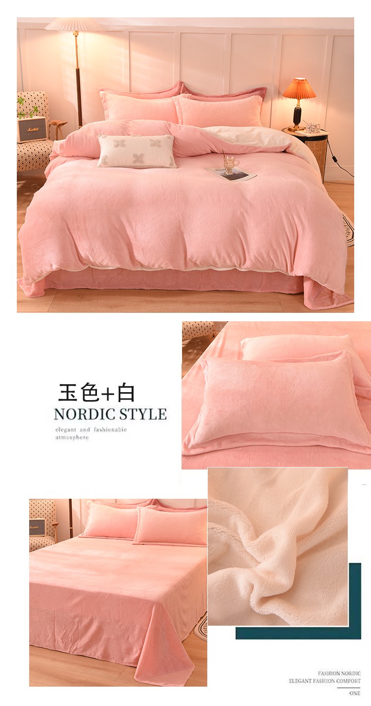 当前位置: 91家纺网 > 商品网购 > 床品套件 > 四件套 > 牛奶绒四件套 > 艾米家居 2021新款纯色拼色牛奶绒系列四件套 玉色+白