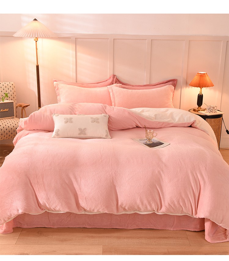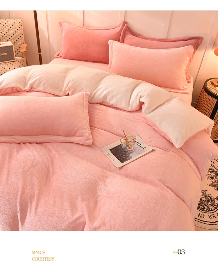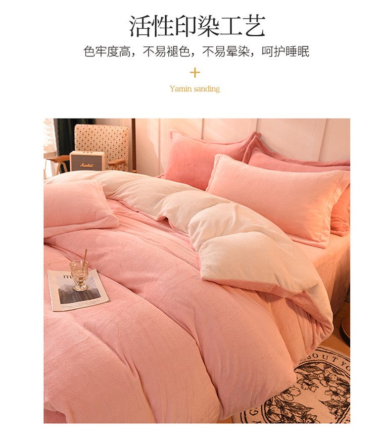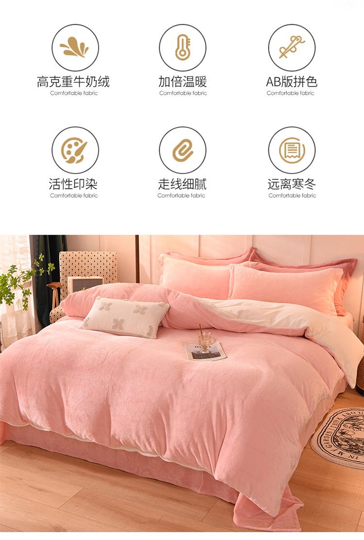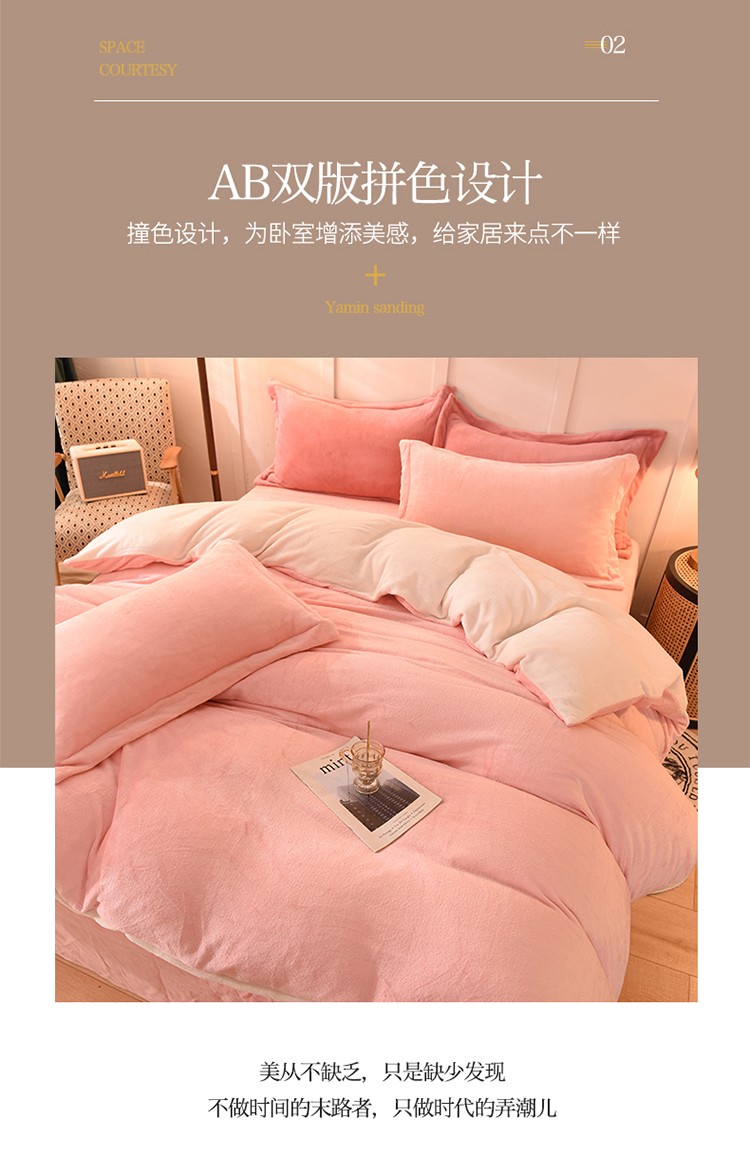 当前位置: 91家纺网 > 商品网购 > 床品套件 > 四件套 > 牛奶绒四件套 > 艾米家居 2021新款纯色拼色牛奶绒系列四件套 玉色+白
