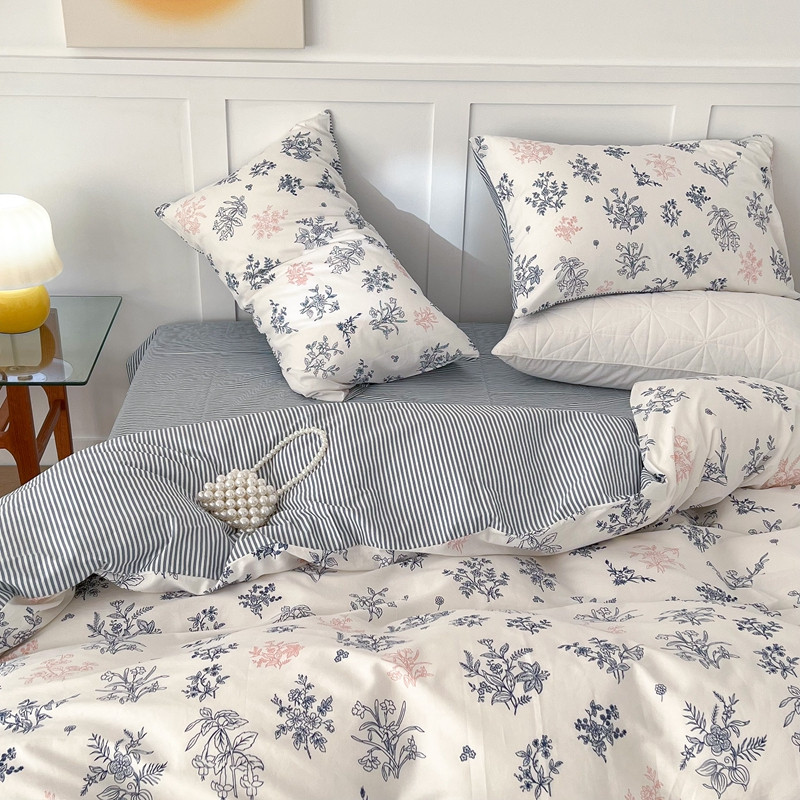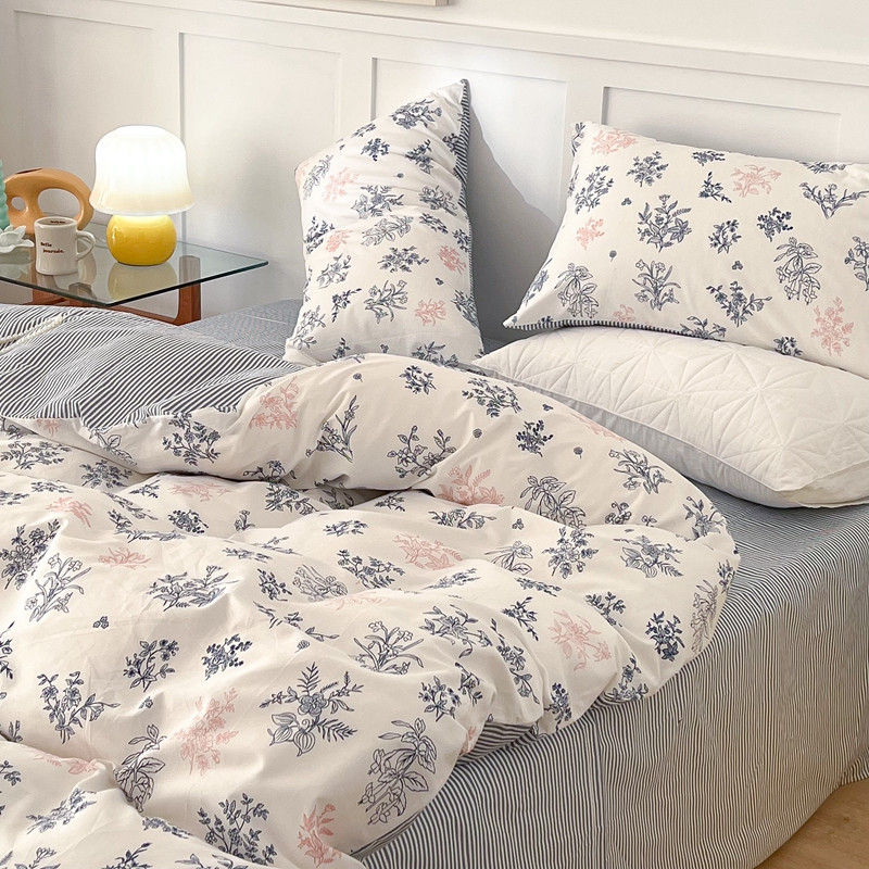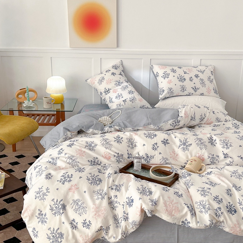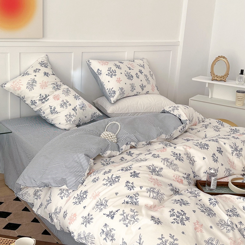 商品名称:昔可家纺 2022新款13372全棉普通款花花系列四件套 素描水墨花蓝