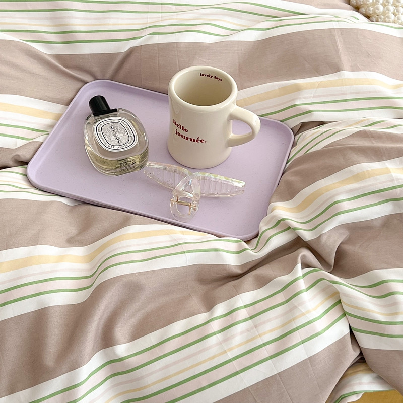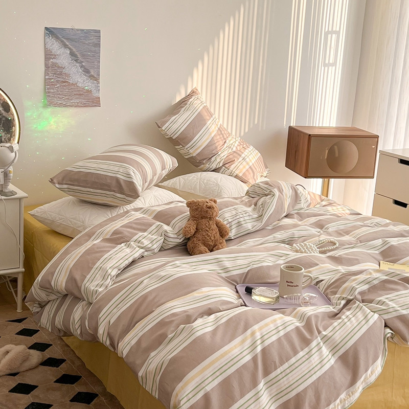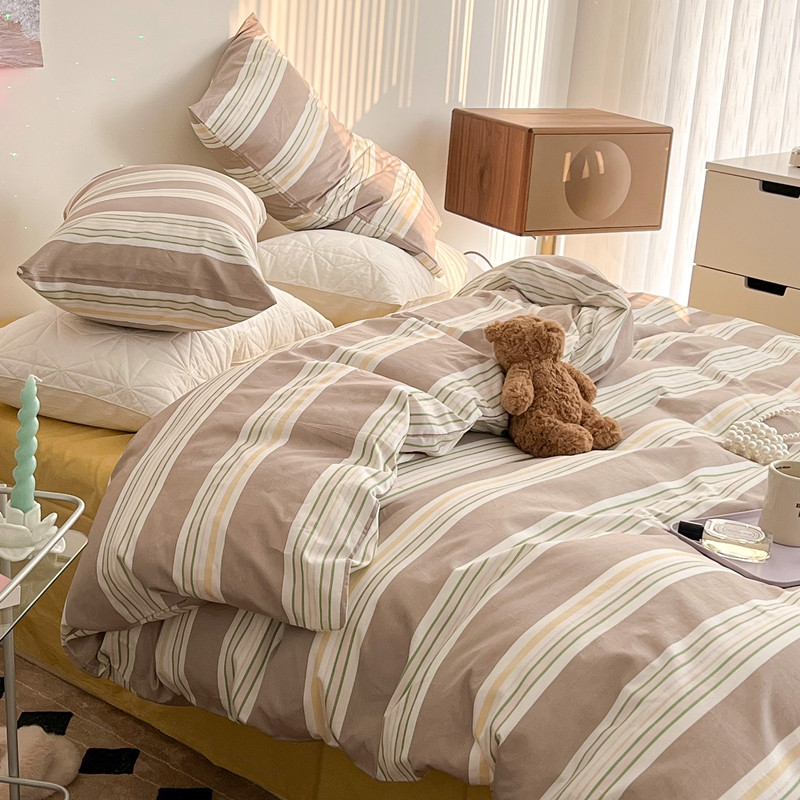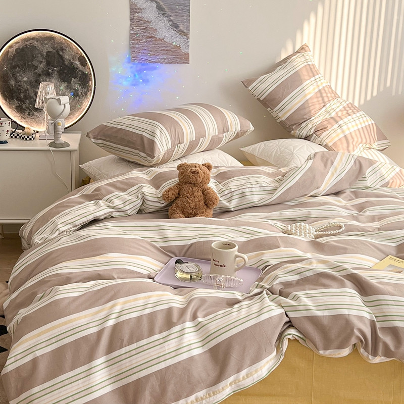 昔可家纺 2022新款13372全棉普通款玛卡龙条纹四件套 浅驼条纹