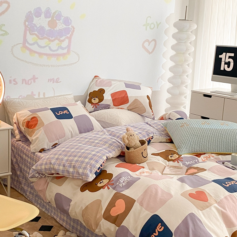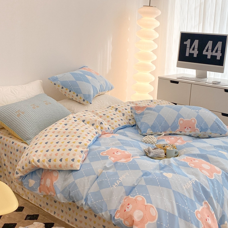 (总)昔可 2023新款学生季卡通普通款四件套,彩色气球熊,彩条恐龙,憨憨熊,花蜜小兔,蘑菇兔,圈圈草莓,蔬菜小兔,郁金香小萌狗
