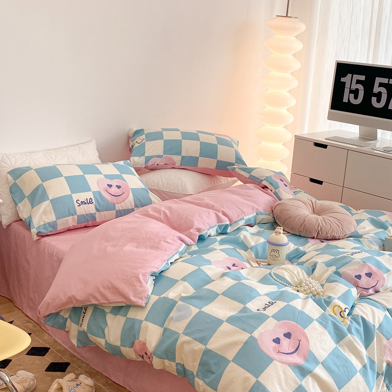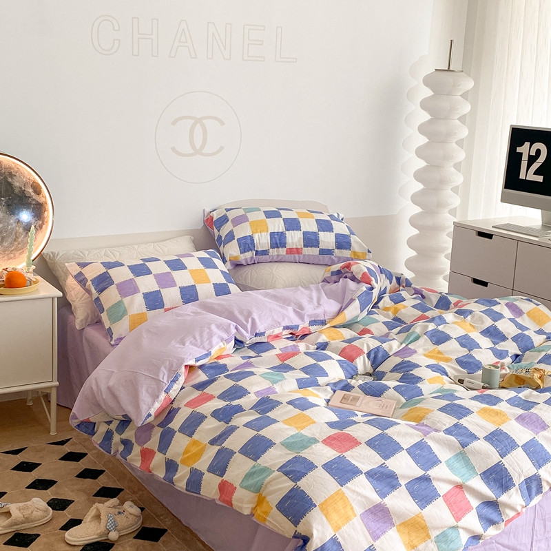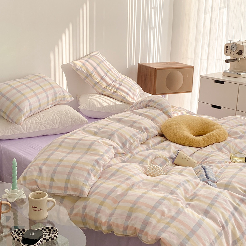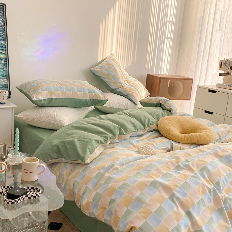 (总)昔可 2023新款全棉ins格子混搭系列四件套,ins简约绿格,粉蓝格,开心果格,学院格纹,粉绿格,海盐兰格,黄绿格,夏日蓝条,芝士黄条,紫芋泥芝士格