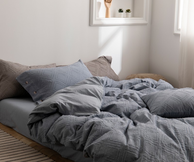 (总)简家居 2025新款亲肤舒适棉麻床盖三件套,棉麻提花