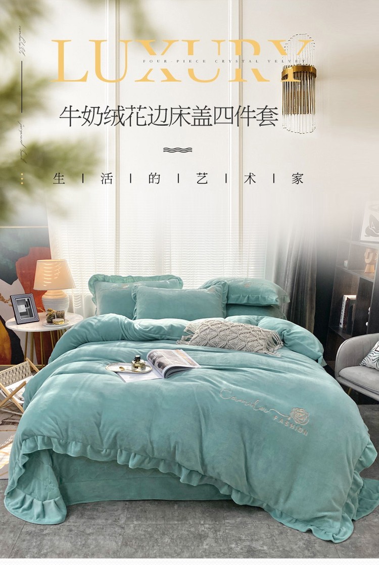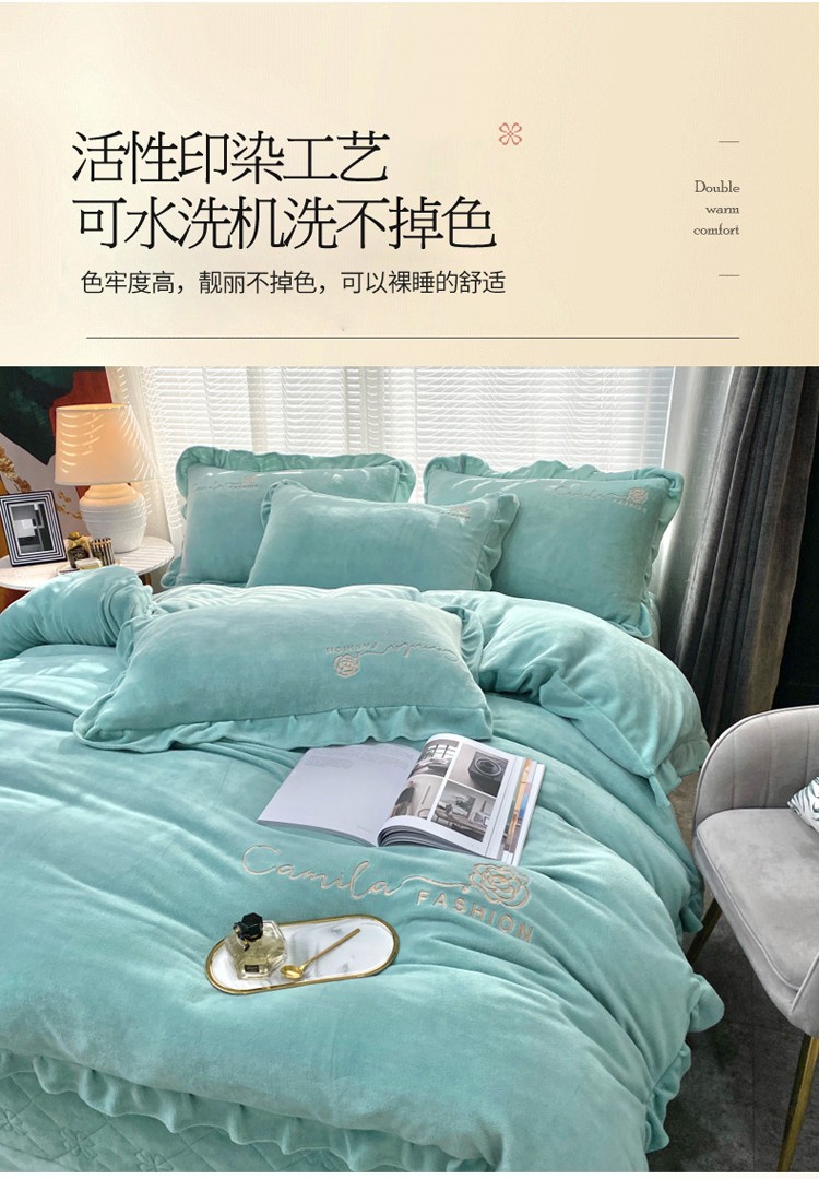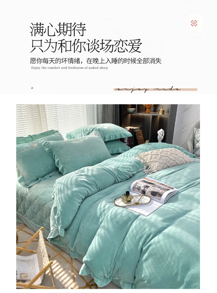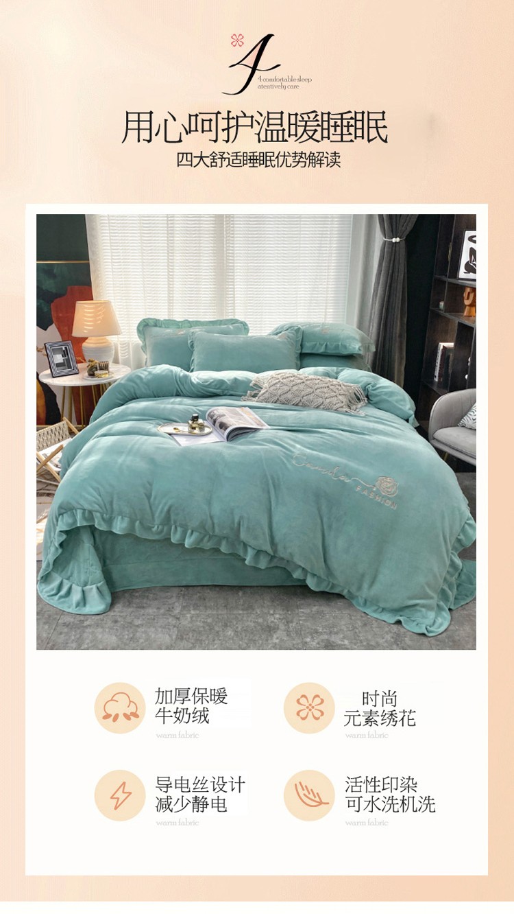 (总)星尚家纺 2024新款加厚保暖全消光牛奶绒夹棉床裙四件套-玫瑰之恋,粉玉,寐紫,浅蓝,水绿