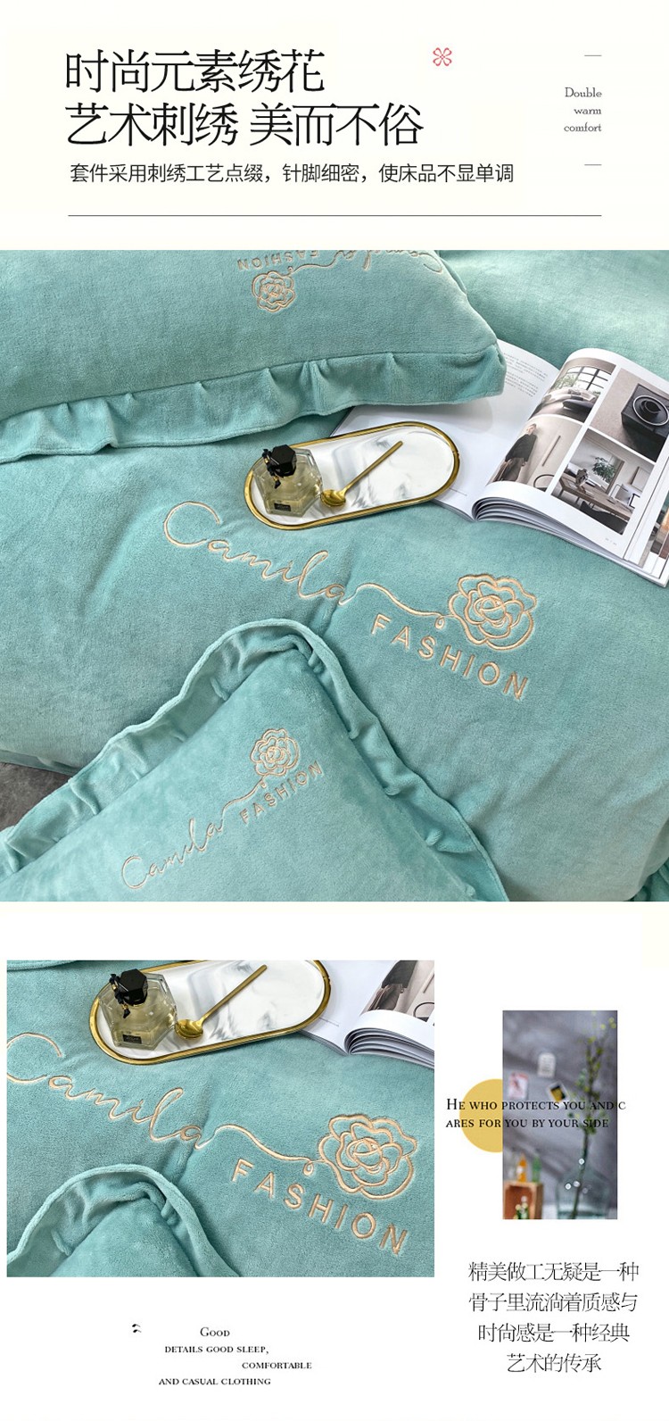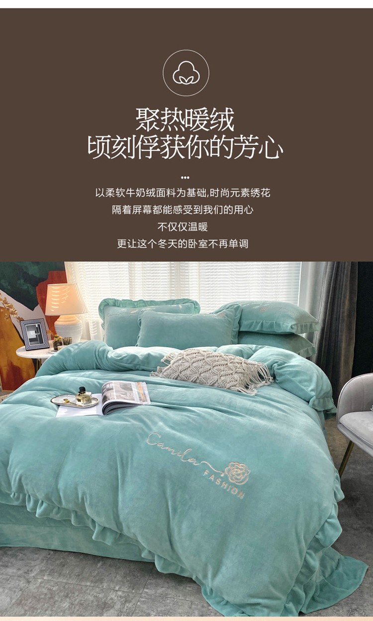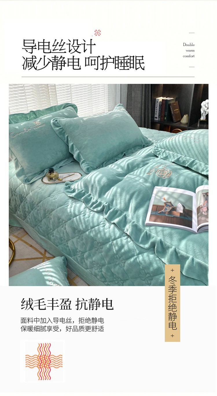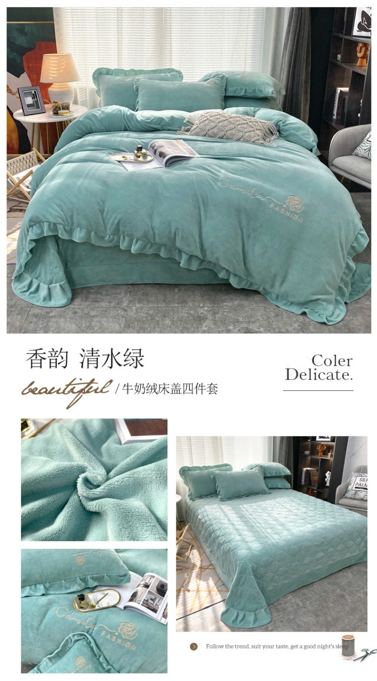 商品名称:星尚家纺2022新款牛奶绒夹棉床盖款四件套香韵 香韵-清水绿