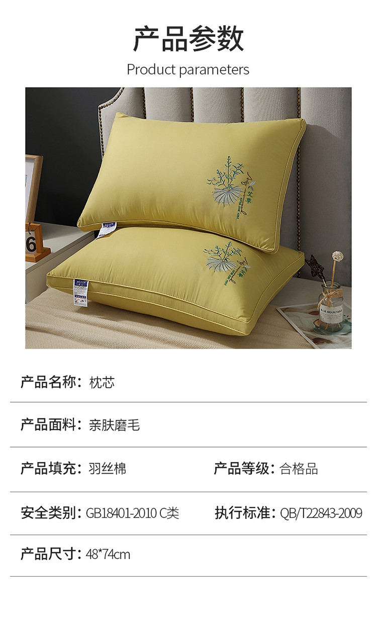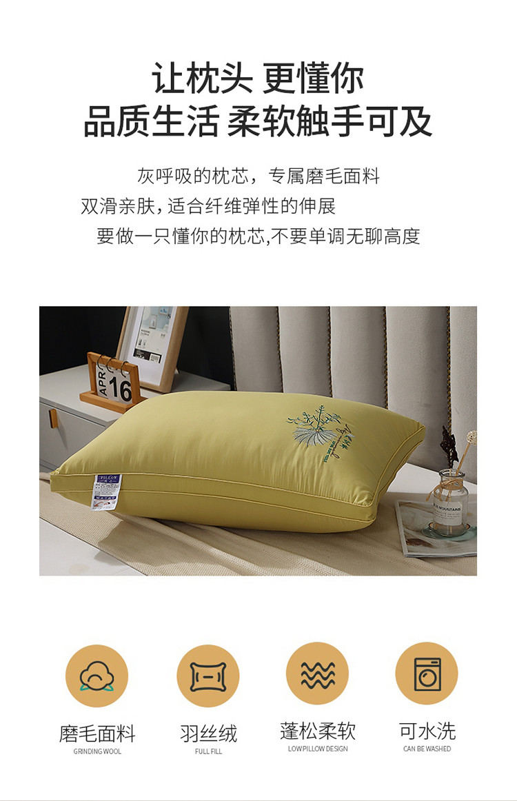 (总)皇冠之家枕芯 2025新款云柔绒感枕头枕芯,黄色,粉色,蓝色,灰色