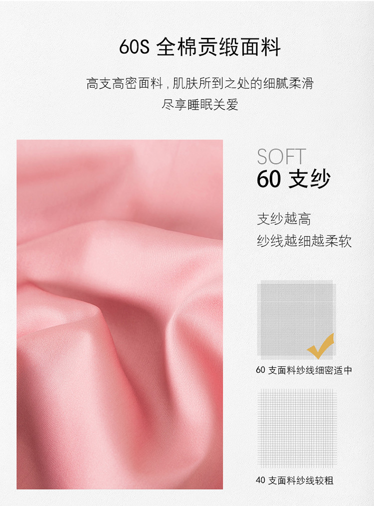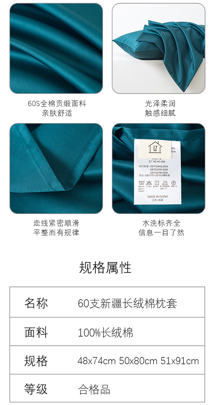 (总)A类60支全棉贡缎大号枕套50*80cm加大纯棉枕头套
