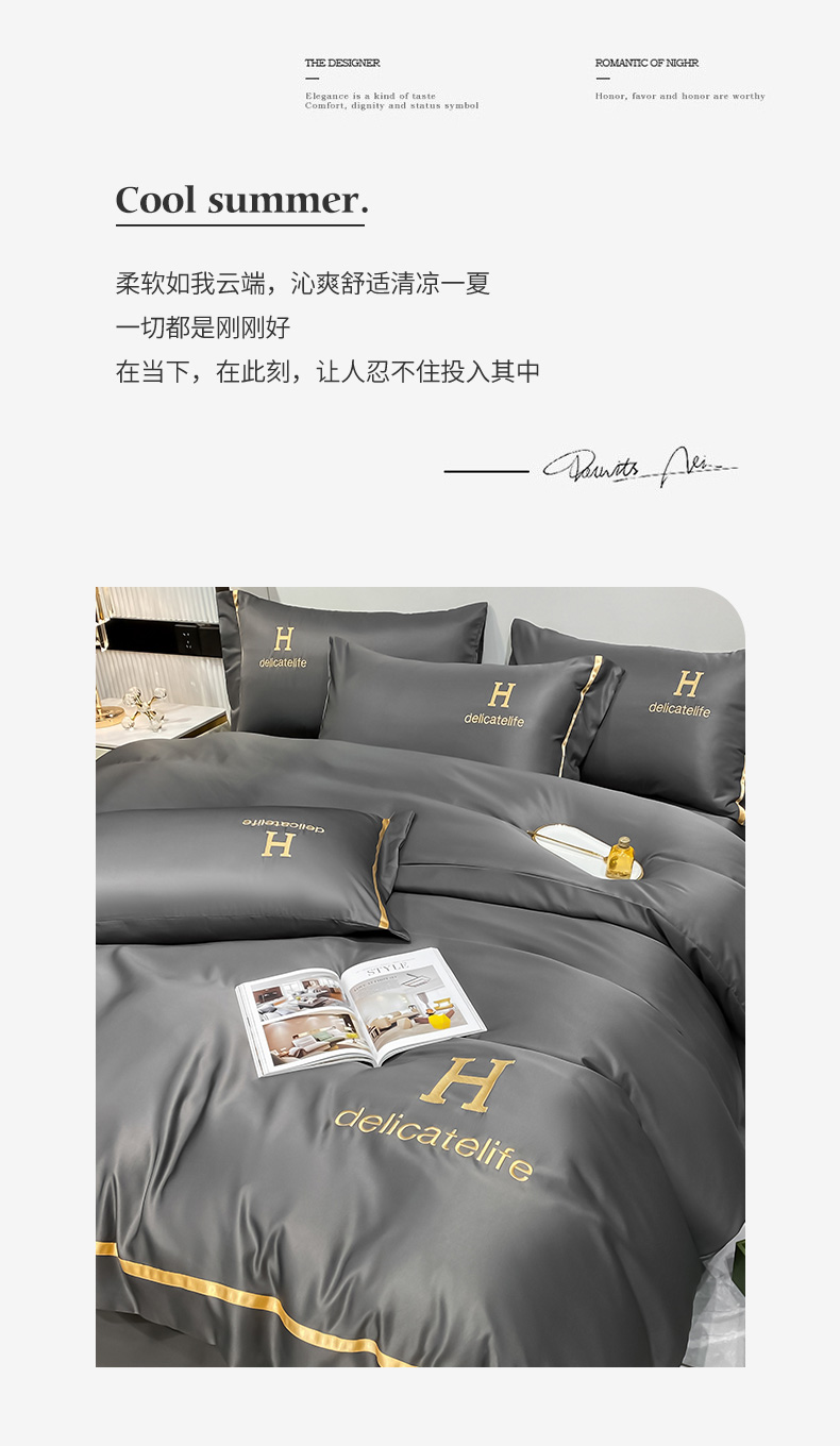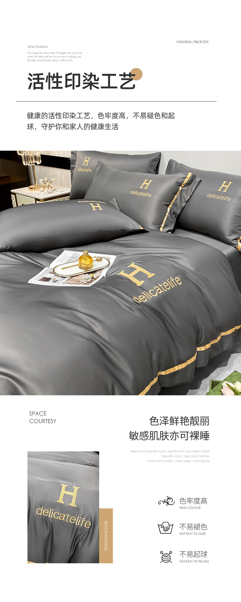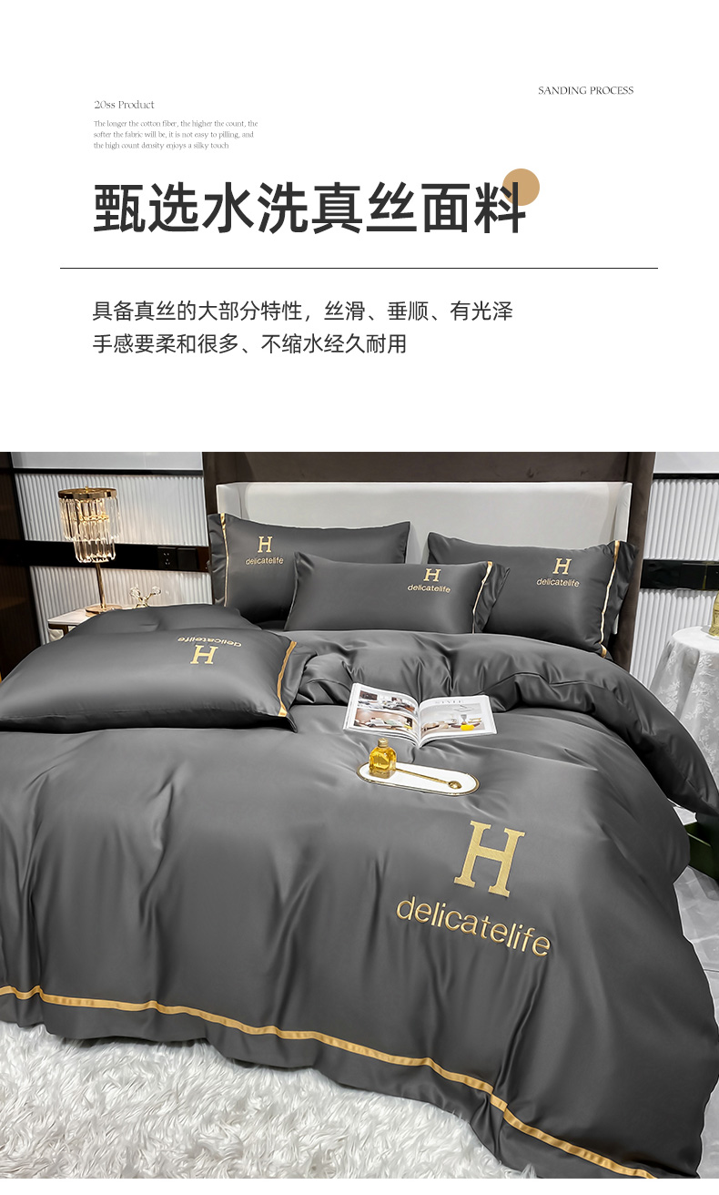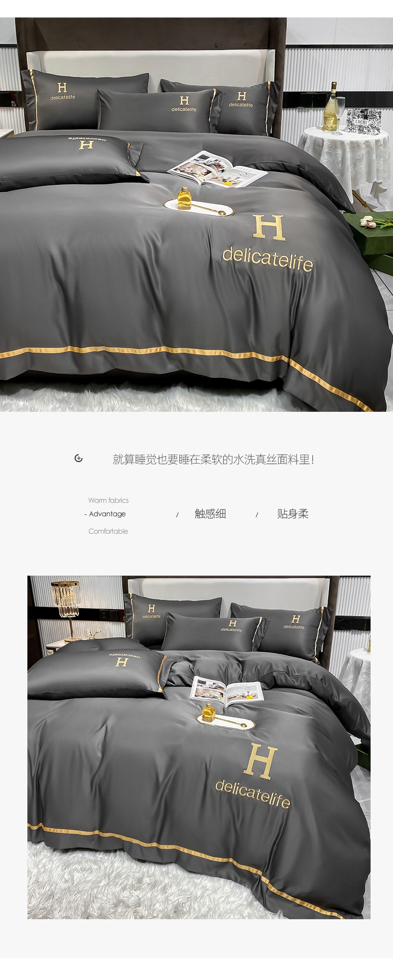 商品名称:绒掌柜2023水洗真丝天丝冰丝刺绣四件套-H系列H-高级灰