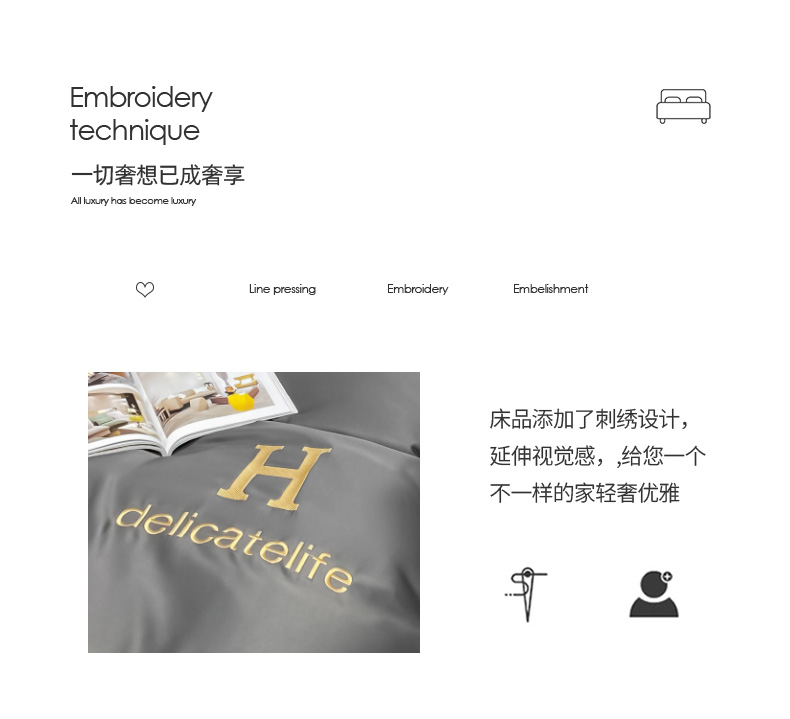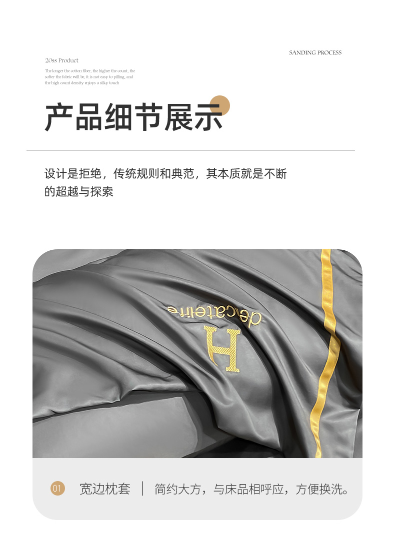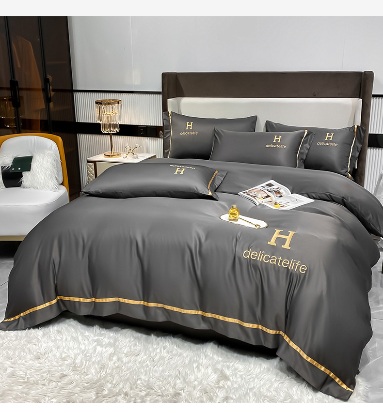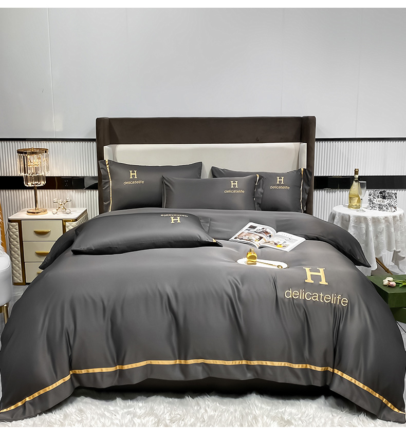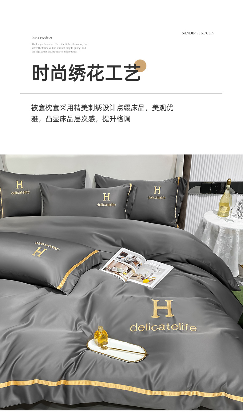 商品名称:绒掌柜2023水洗真丝天丝冰丝刺绣四件套-H系列H-高级灰