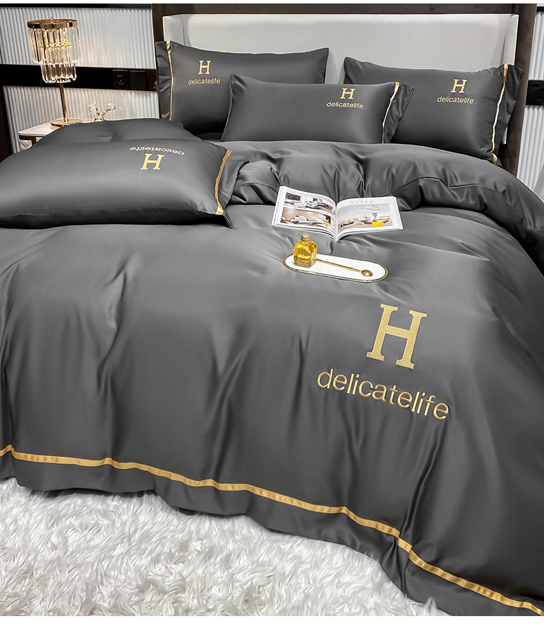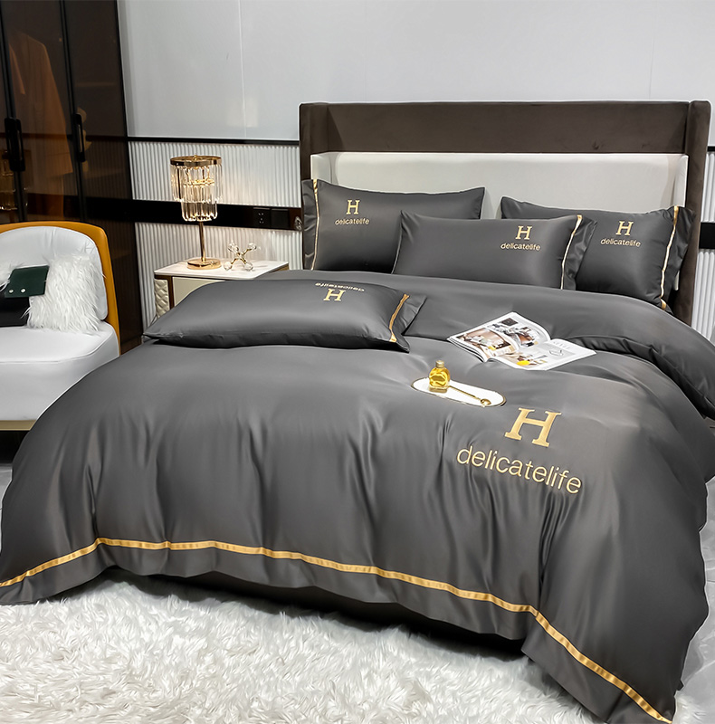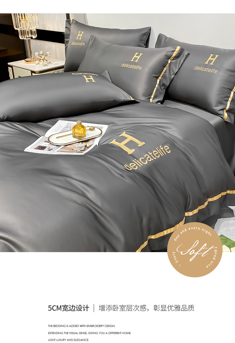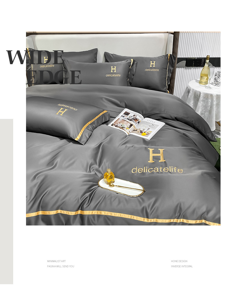 绒掌柜2023水洗真丝天丝冰丝刺绣四件套-H系列H-高级灰