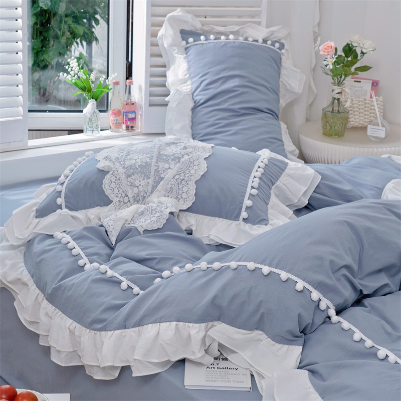 北纬27度 2022新款全棉水洗棉四件套洛丽塔系列 元若蓝