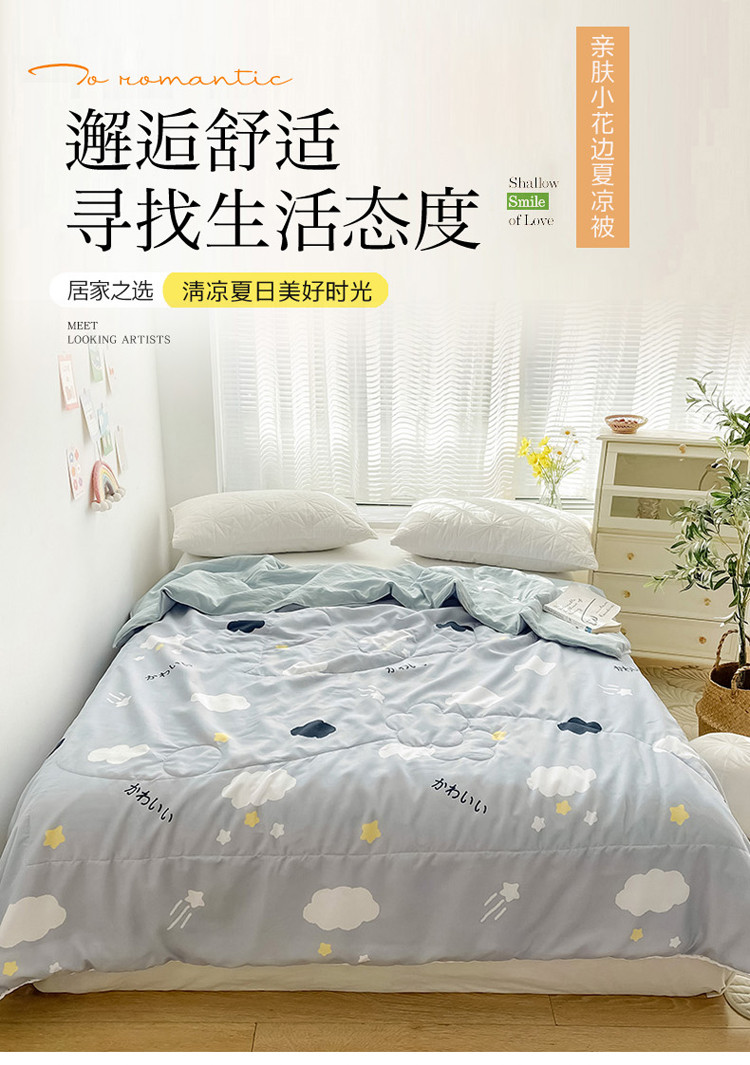 商品名称:寐居 2022新款亲肤小花边水洗棉单夏被 白云朵朵