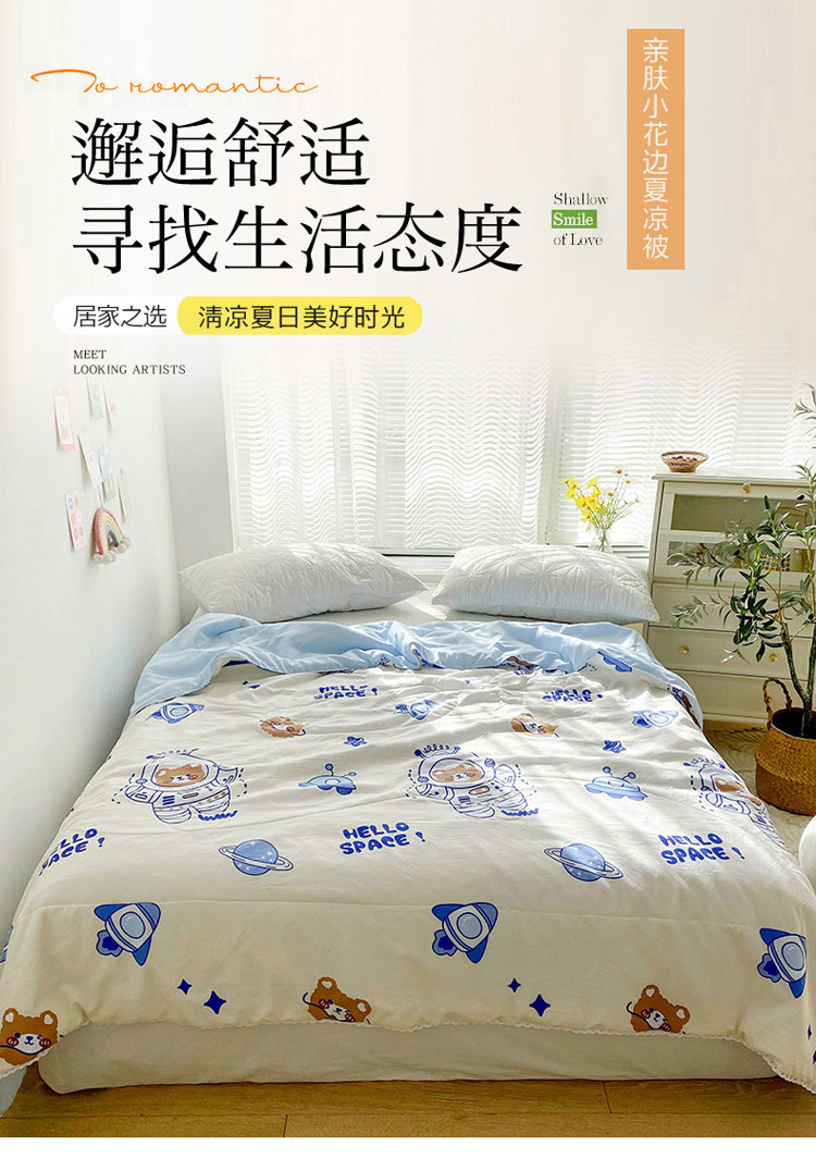 商品名称:寐居 2022新款亲肤小花边水洗棉单夏被 宇宙星球