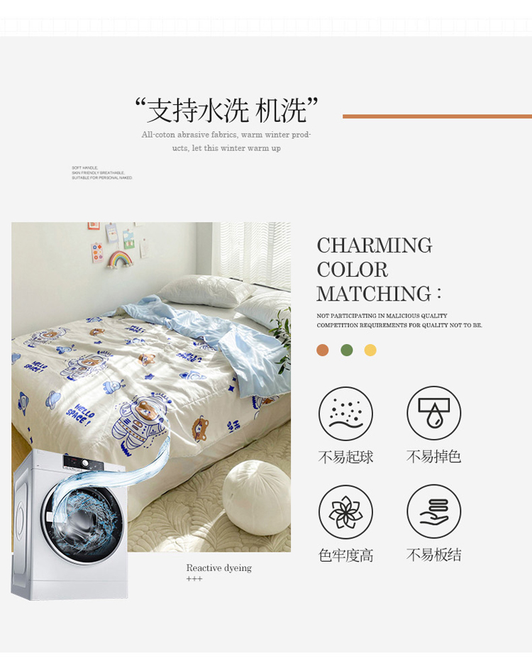 3、通州区市场监督局友情提醒,近期涉及到床上用品不褪色不掉毛不缩水的投诉和以世界知名品牌图案为面料的床品举报较多。请各商家自检自查,对照整改或进行下架处理。