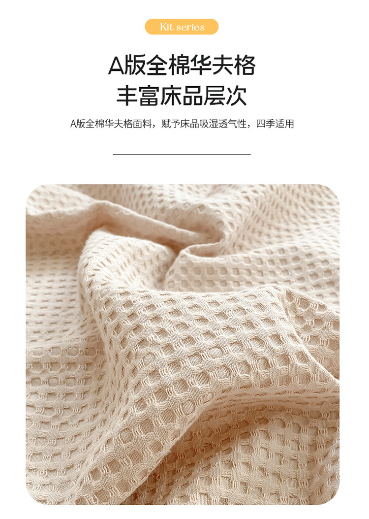(总)雅居纺家纺 2022新款全棉华夫格普通款四件套,焦糖,米驼,奶油白,柔粉,深灰,雾蓝,月灰