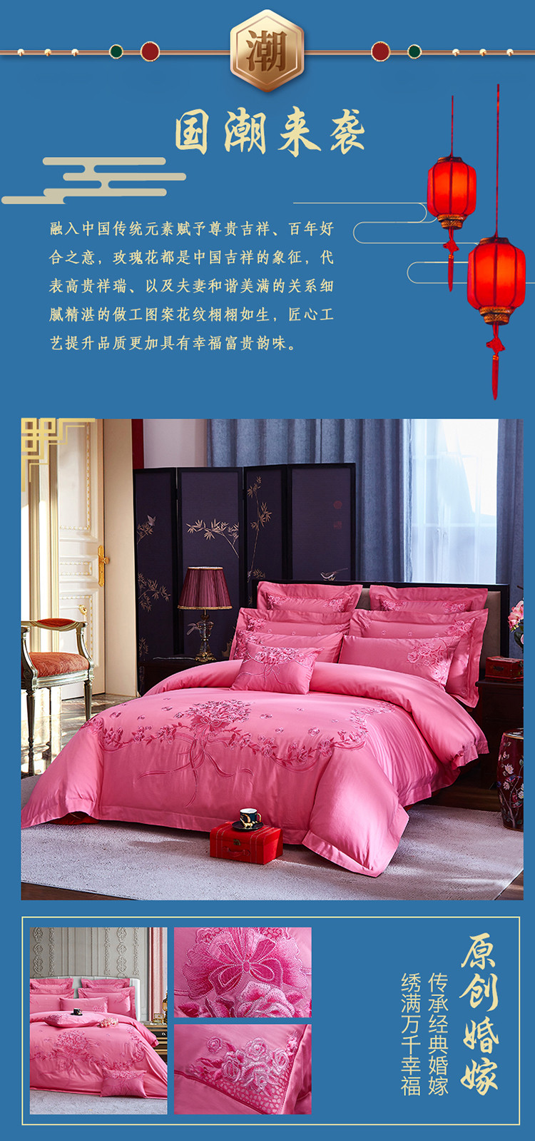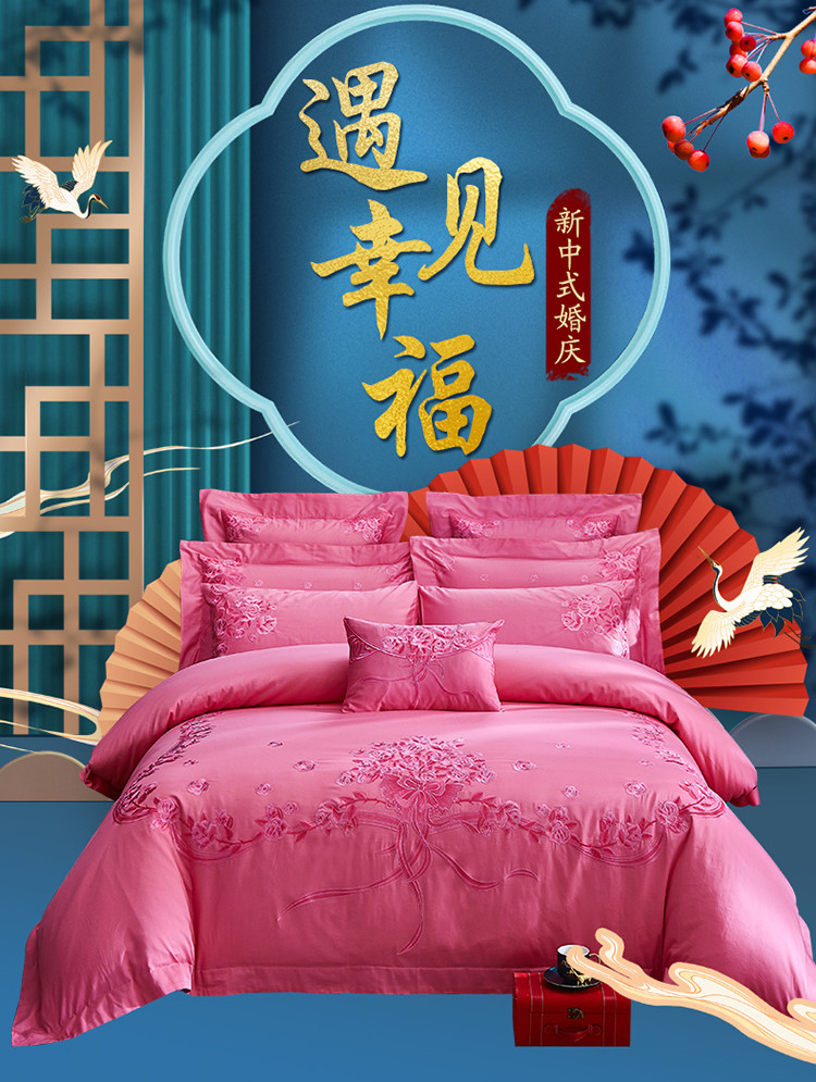 当前位置: 91家纺网 > 商品网购 > 床品套件 > 多件套 > 多件套 > (总)高大尚2022新款长绒棉婚庆多件套-遇见幸福粉