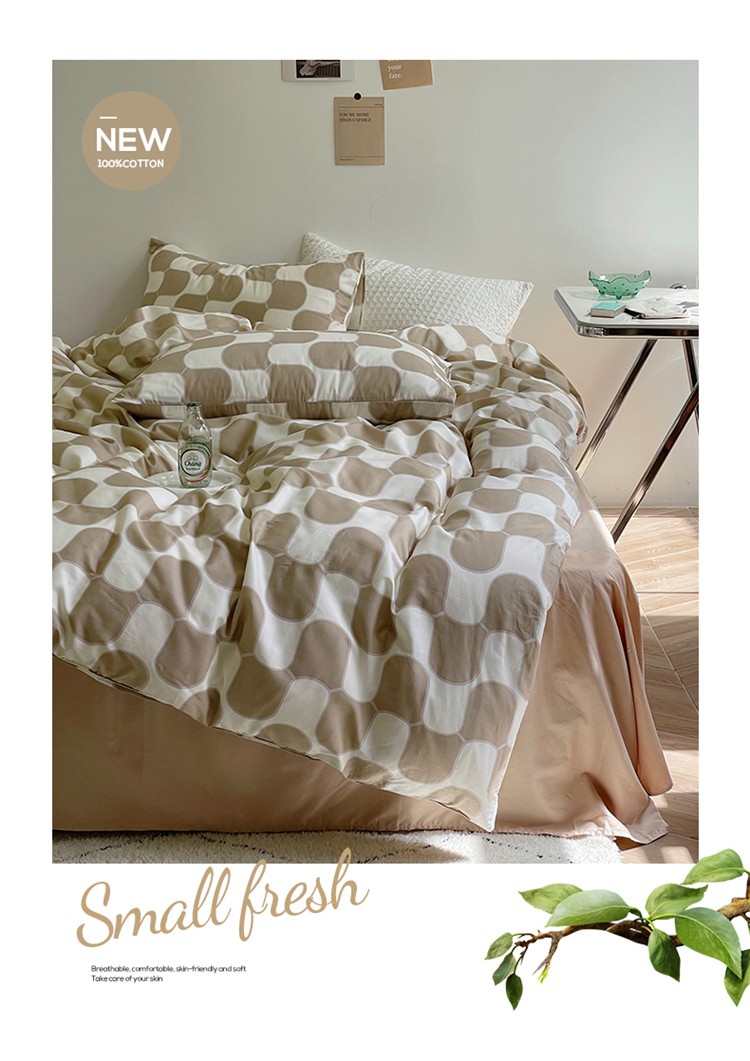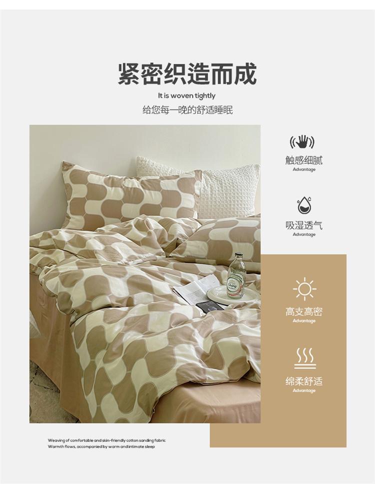 (总)窝米2022新款13370全棉四件套花卉系列,春风里,青柚,秋收,水波纹米驼,水波纹炭黑,恬谧,夏花,云溪红,云溪黄