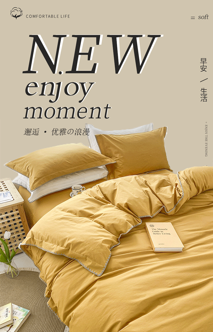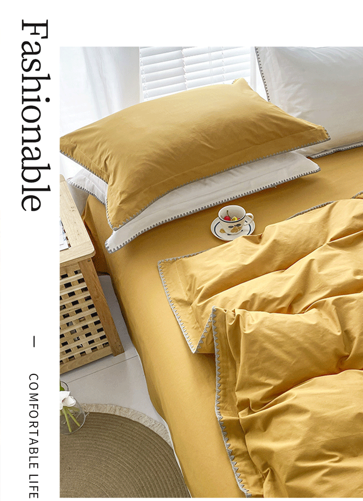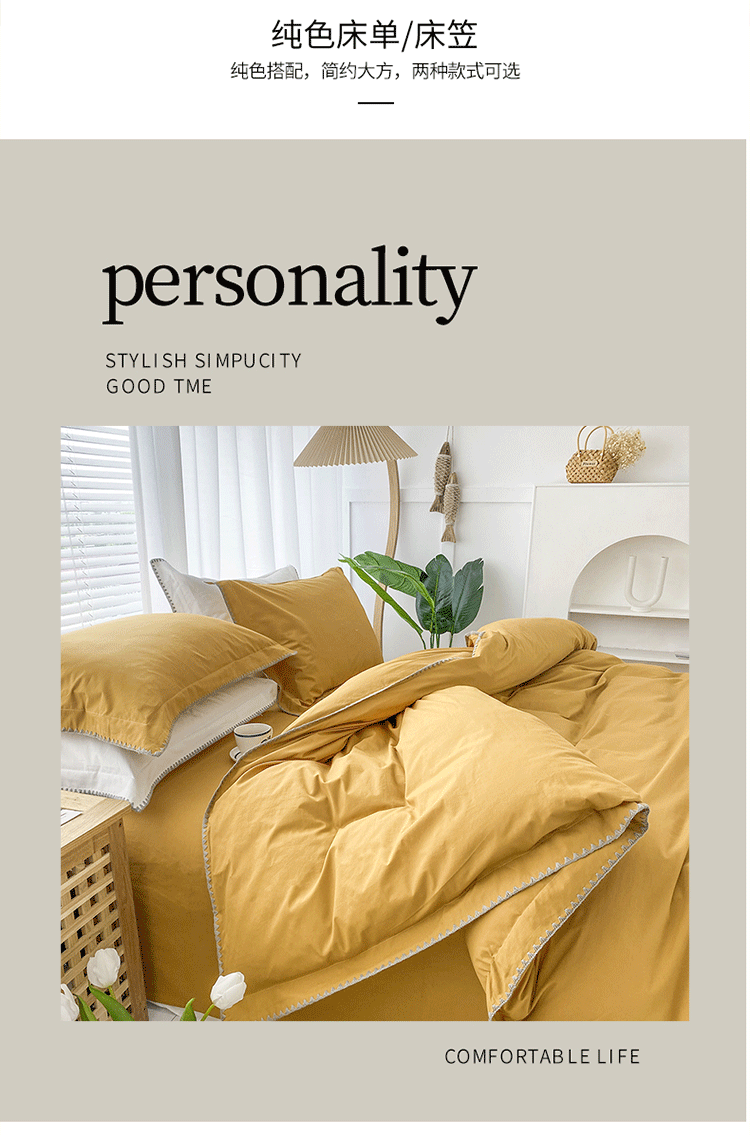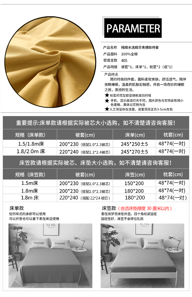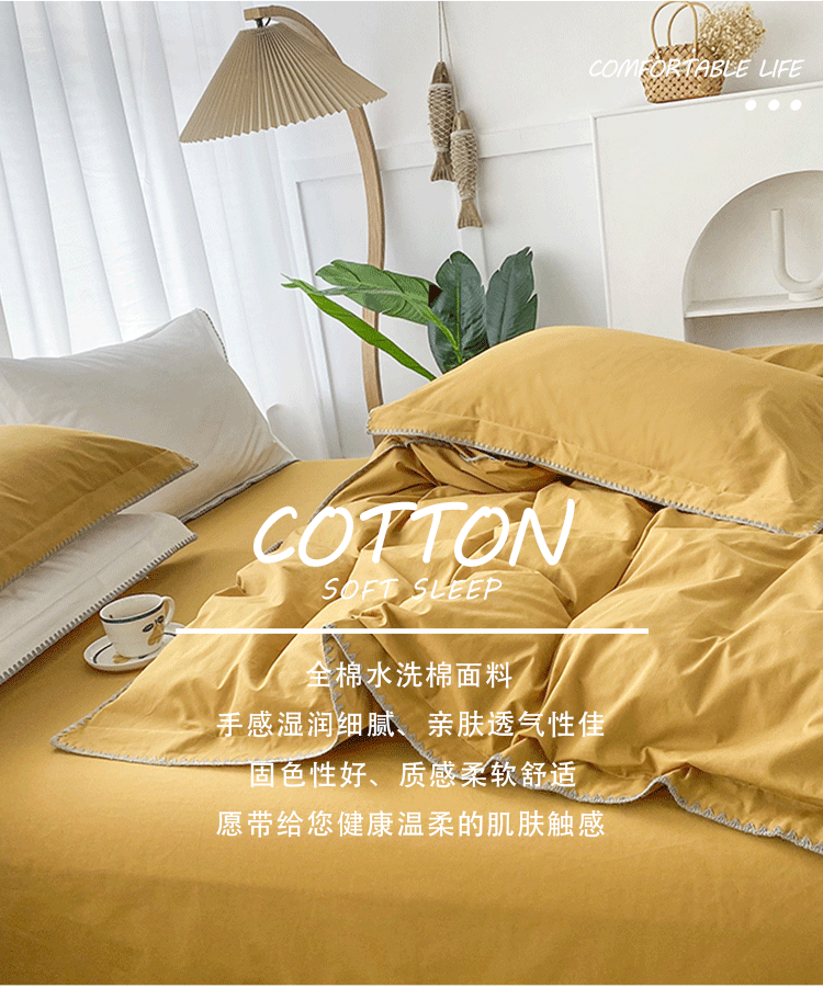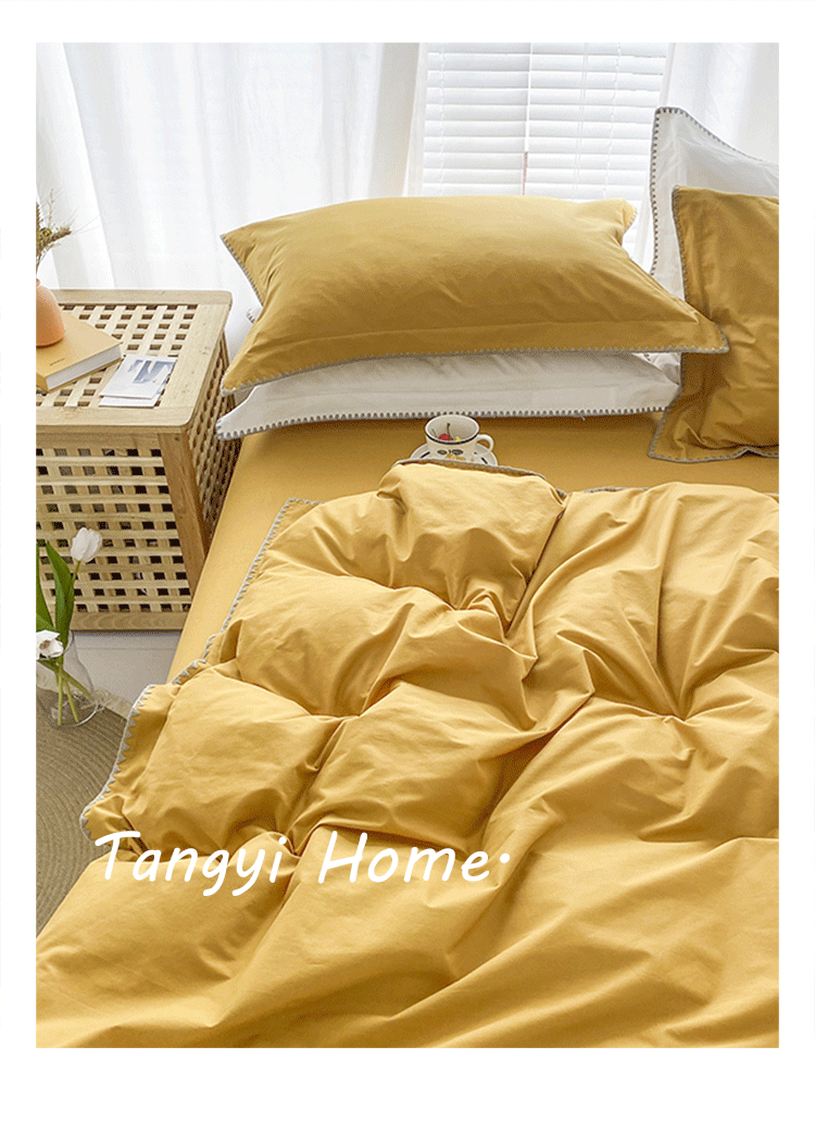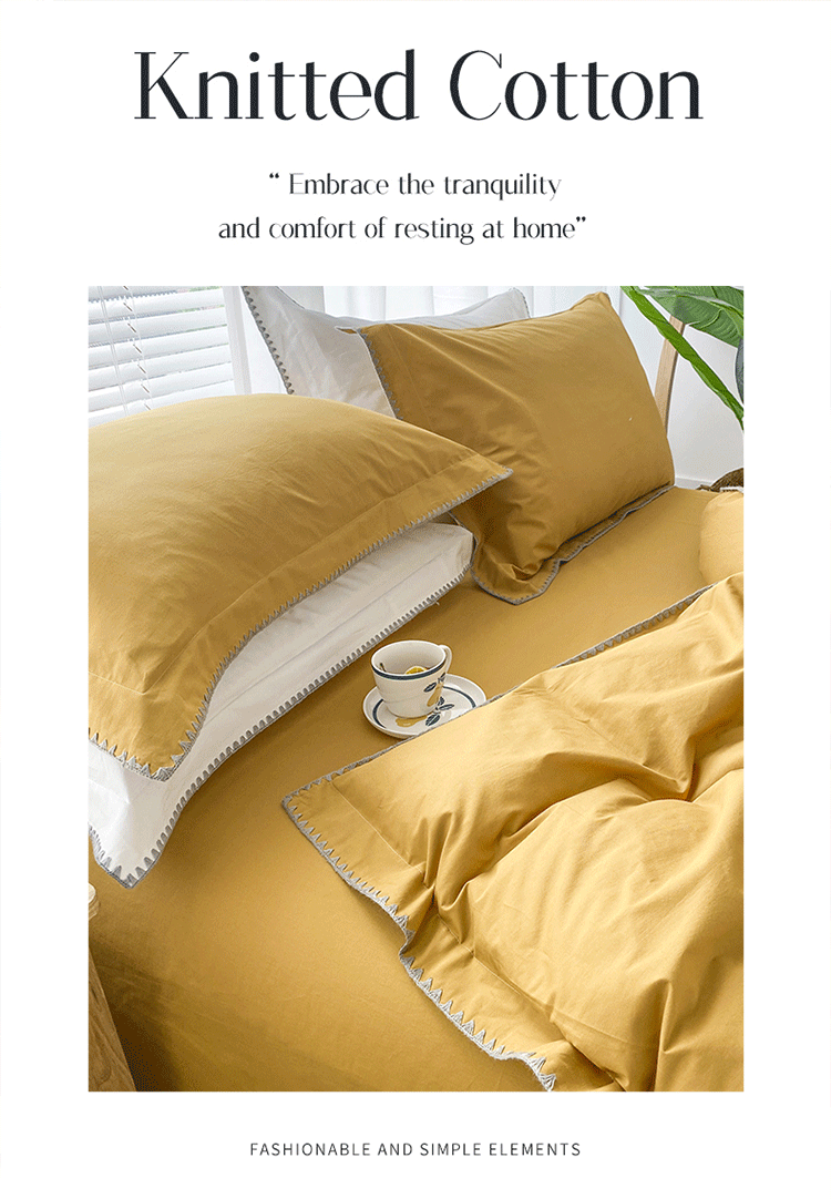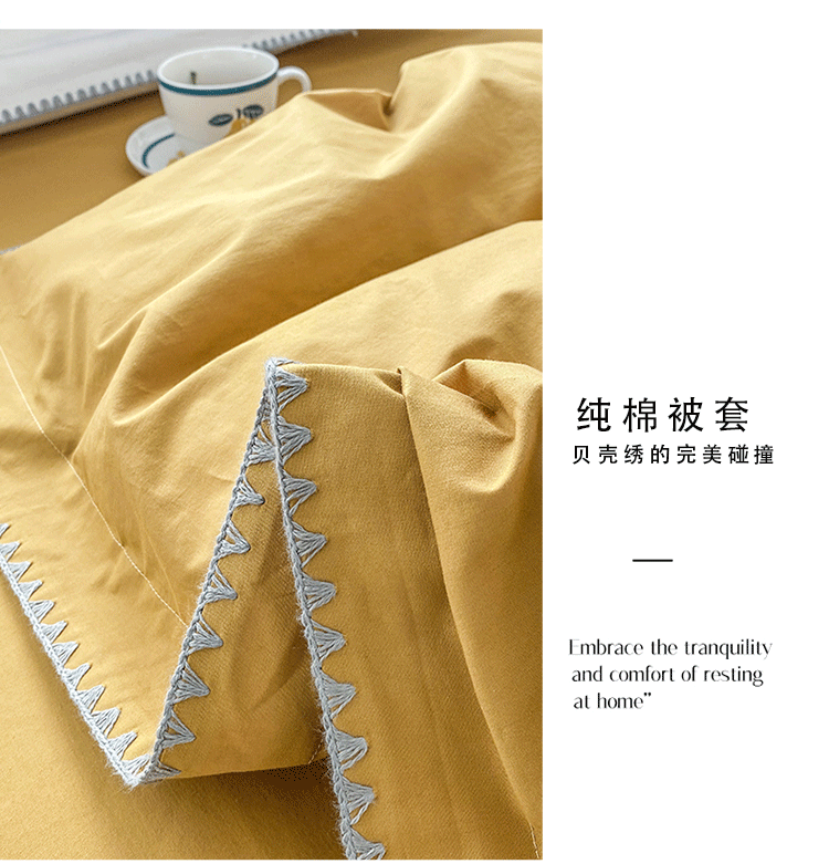 商品名称:网客 2024新款全棉水洗棉贝壳绣四件套 玉子黄